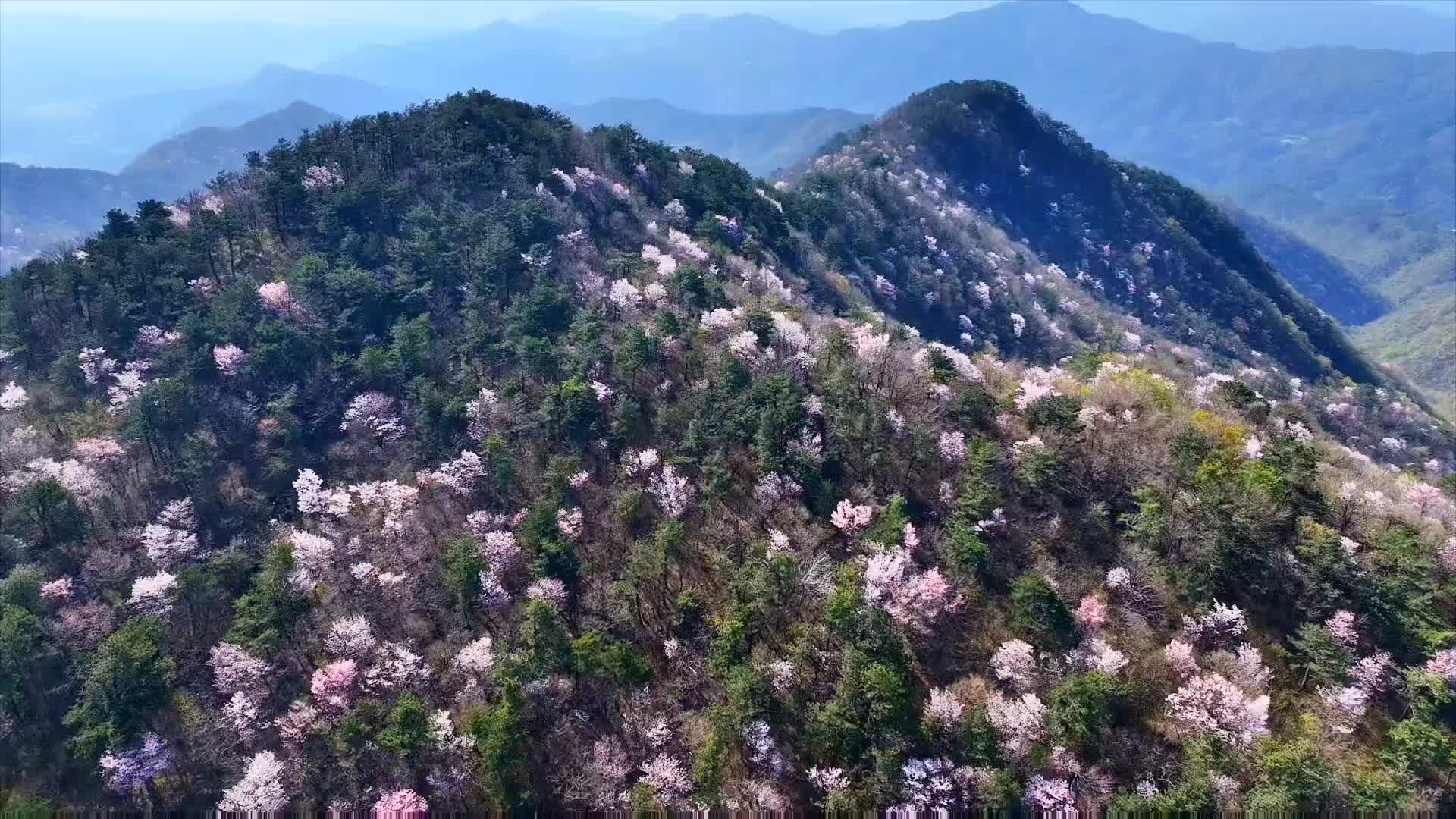 ??黃毛尖櫻花谷,宛如夢幻仙境。那野櫻花,已全面綻放,如云似霞,在微風中輕盈搖曳,每一朵都訴說著春天的浪漫。花瓣紛飛,恰似一場粉色的雪,落于肩頭,帶來無盡溫柔。