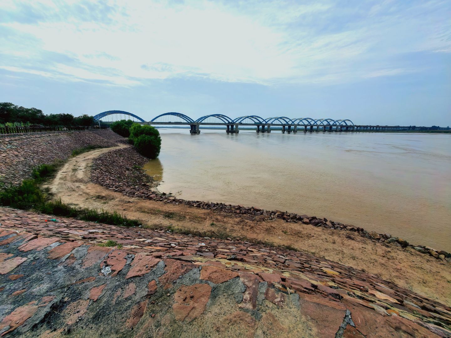 藍色的拱橋在天際線間依次排開,線條流暢又充滿力量感,橋上車流穿梭,像是“現代生活與古老黃河的對話”。