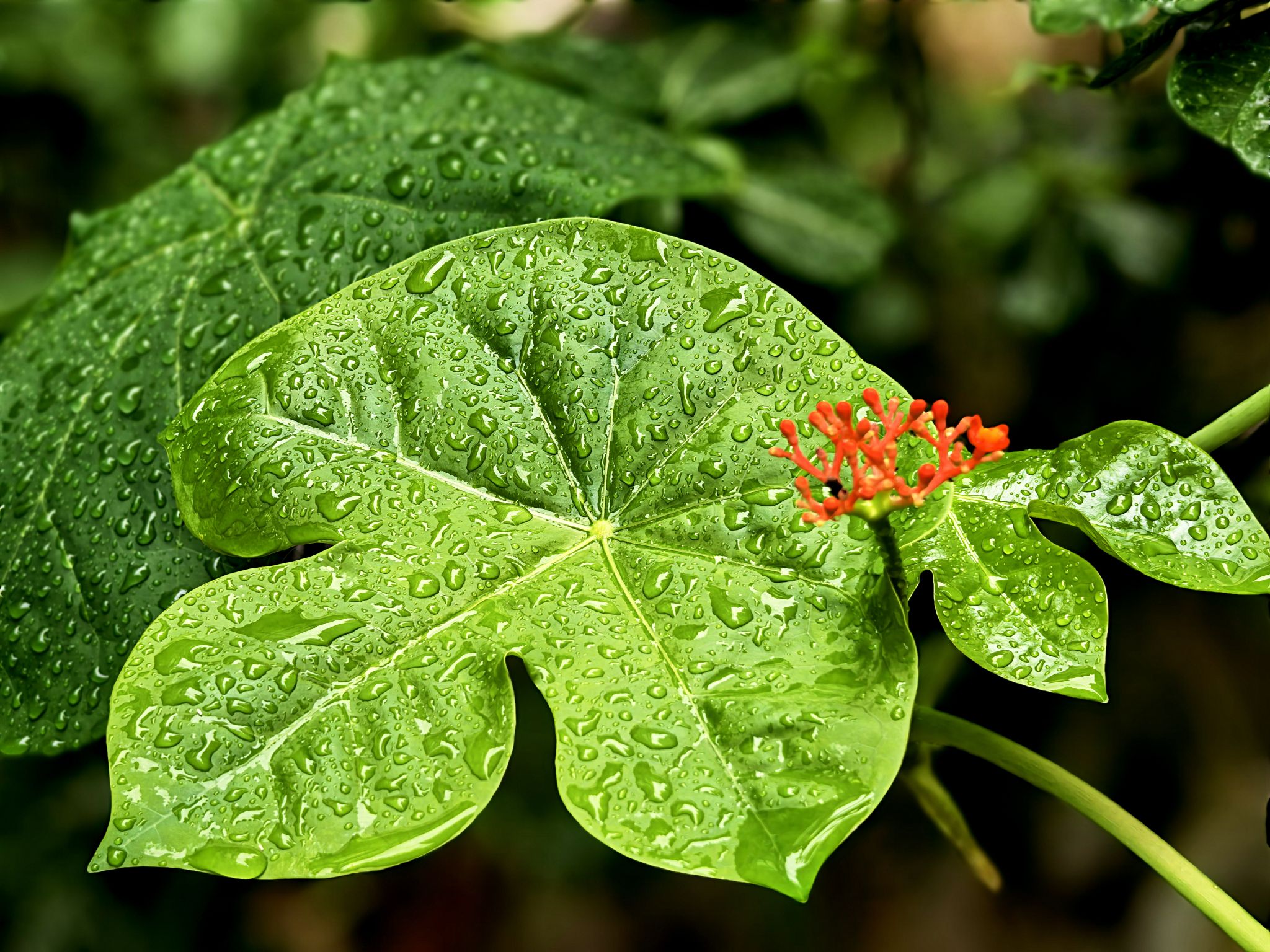幽園靜鎖芳辰, 葉間珠露生津。 一枕清蔭如夢, 惹來詩興留人。
