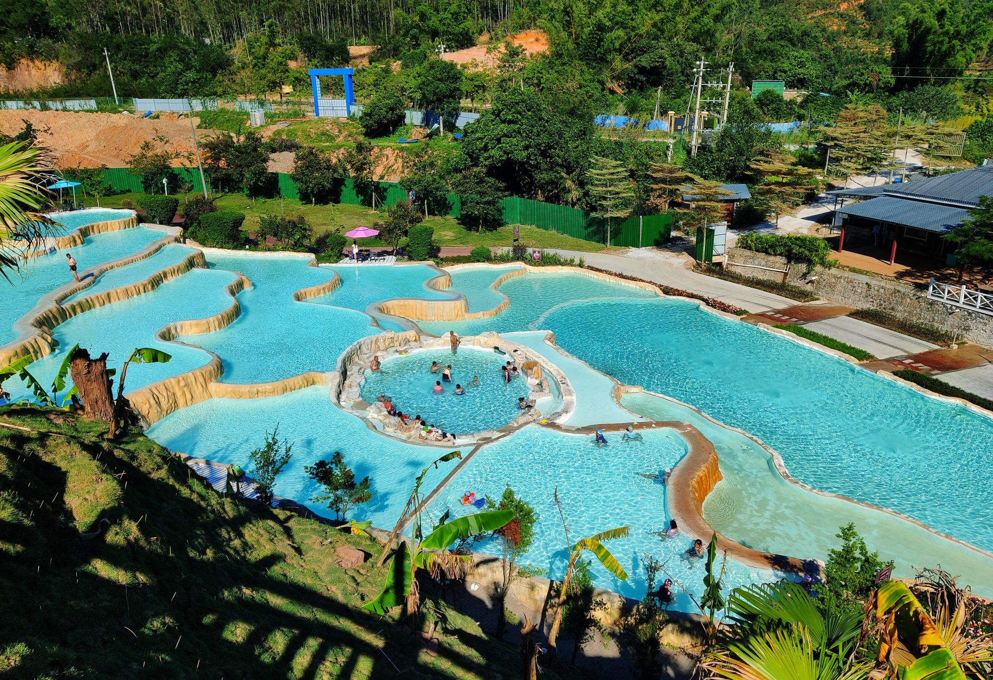 布透溫泉位于廣西防城港市上思縣城北郊5公里處,三面環山,地處幽谷,屬亞熱帶季風氣候。泉水自巖穴涌出,明朝即有文獻記載用于釀酒與泡澡,泉水中鍶和偏硅酸含量接近國家標準,鈉含量低且游離二氧化碳含量較高,達到醫療礦泉標準。泉水因呈現獨特的藍色,被譽為“中國藍泉”。