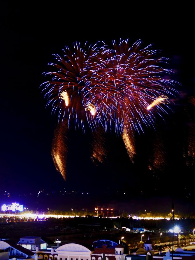 跟團到越南旅游,走東興中越陸路口岸,我方手續簡潔,自助通關,越方面效率比較低,一天的各種手續、等待,直到夕陽西下才完成。車到廣寧省會下龍市,已經很晚了,疲憊的進入賓館,突然聽到禮炮聲,迅速從包里拿出相機,沒有支架,手扶窗框抓拍美好,與大家分享。也給自己治愈一下。