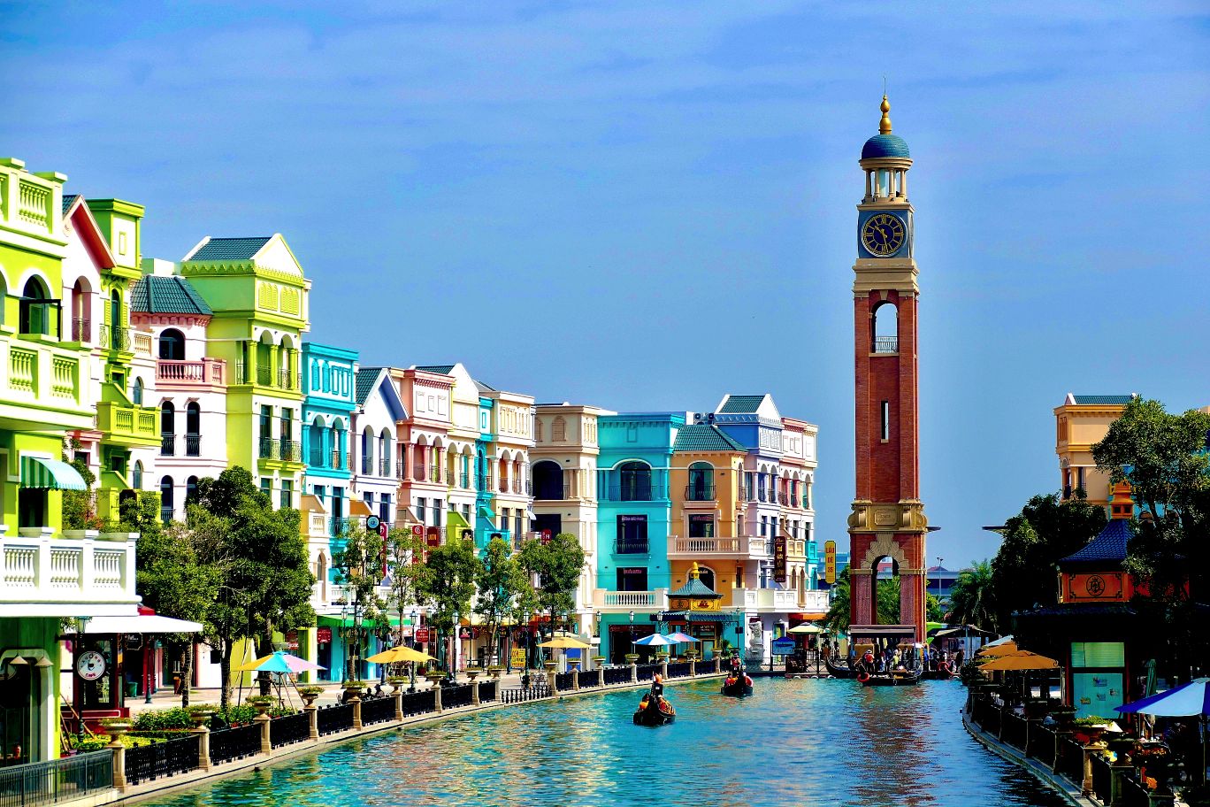 ?河內歐洲小鎮(正式名稱為Mega Grand World)是位于?越南首都市郊的一個以歐式建筑和運河景觀為特色的新興旅游景點,被譽為“河內版威尼斯”。??小鎮以?巴洛克、?哥特式等歐洲古典風格為主,建筑外立面采用各色鮮艷涂裝,搭配尖頂、鐘樓和雕花設計,營造出童話般的視覺效果。