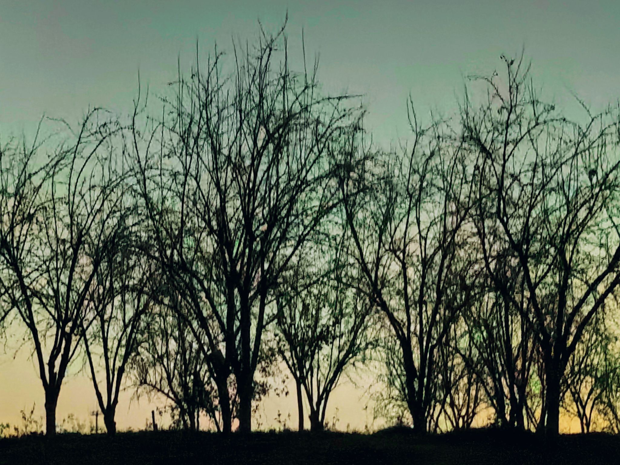 葉疊金綃,枝垂彩綺,晴光碎落芳郊。淺草承霜,猶存舊綠夭夭。長林似被霞綃裹,透疏陰、暖透征袍。更依稀,人影閑行,笑語輕飄。