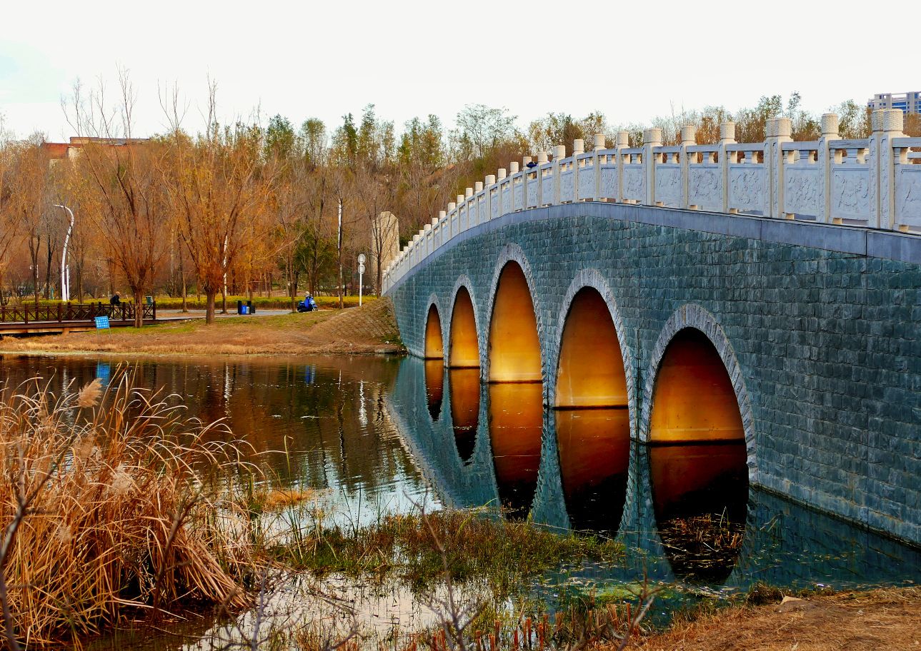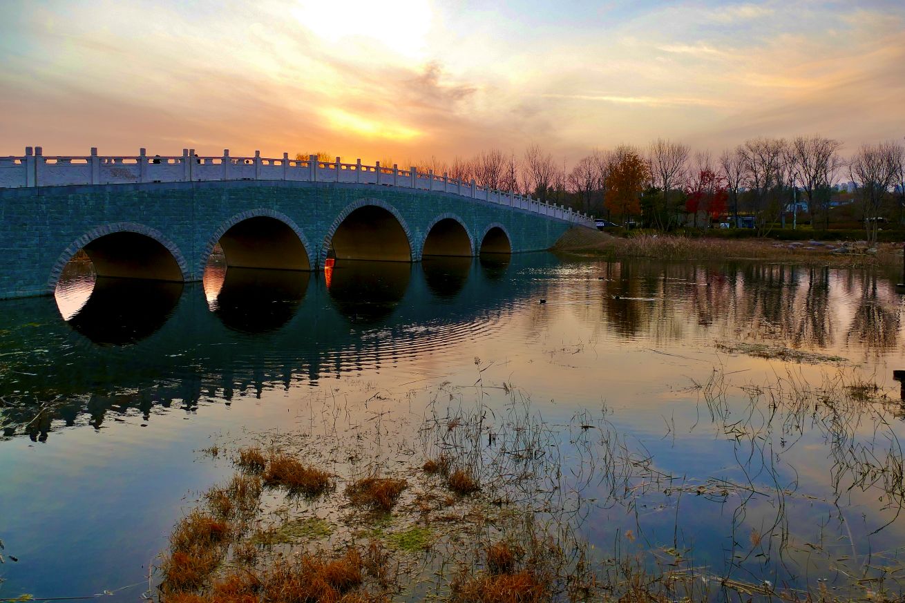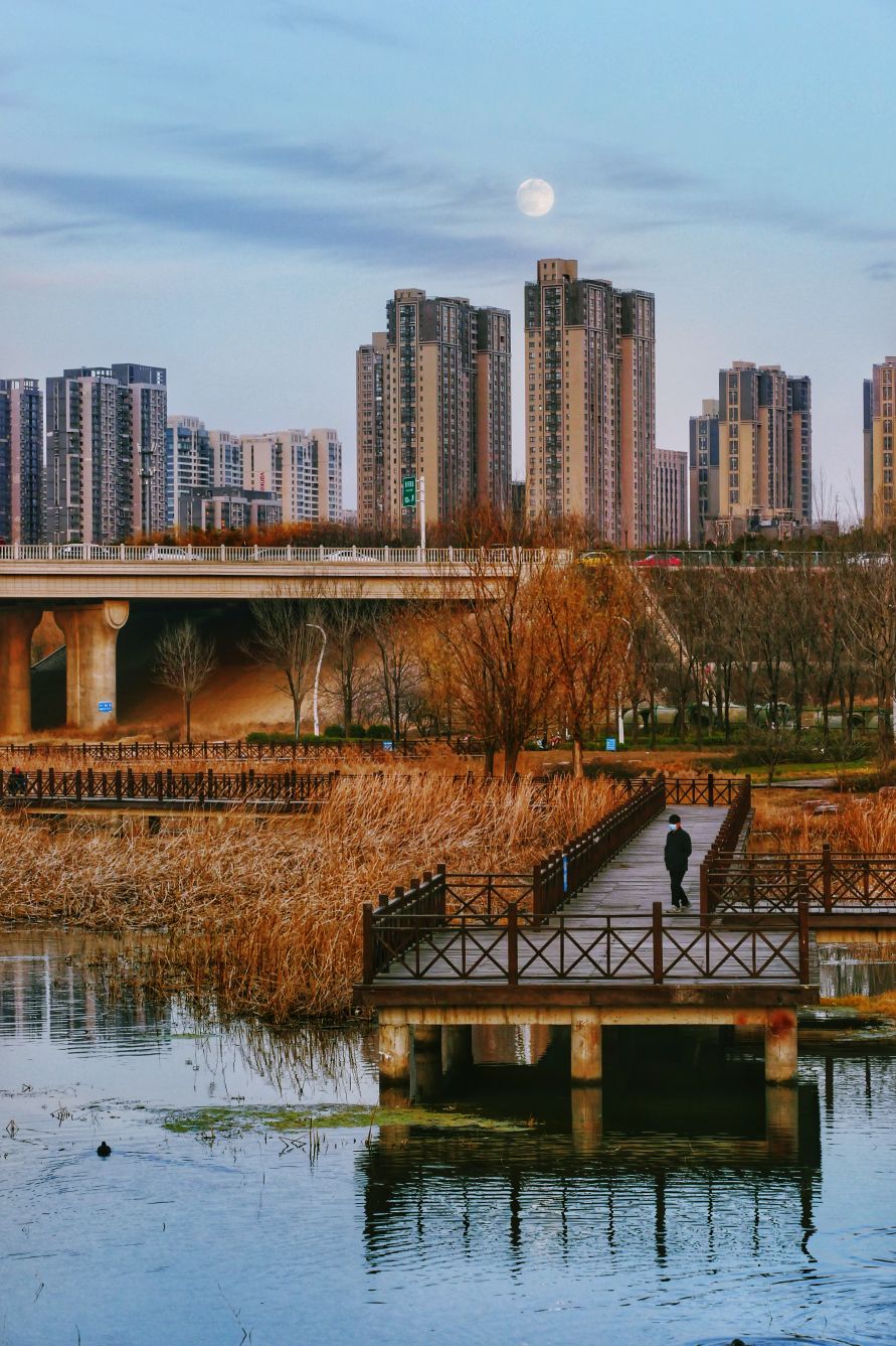 賈魯河公園是鄭州市區內一條長約137公里的沿河生態公園,作為城市最長的河流,自從綜合治理逐漸建成景觀帶,已成為集自然生態、休閑騎行、親水玩樂和歷史文化于一體的綜合性公園。?聽朋友說在隴海路與西三環段可見金光穿洞,今天趕過去晚了些,依然見到夕陽下的公園景觀美不勝收。