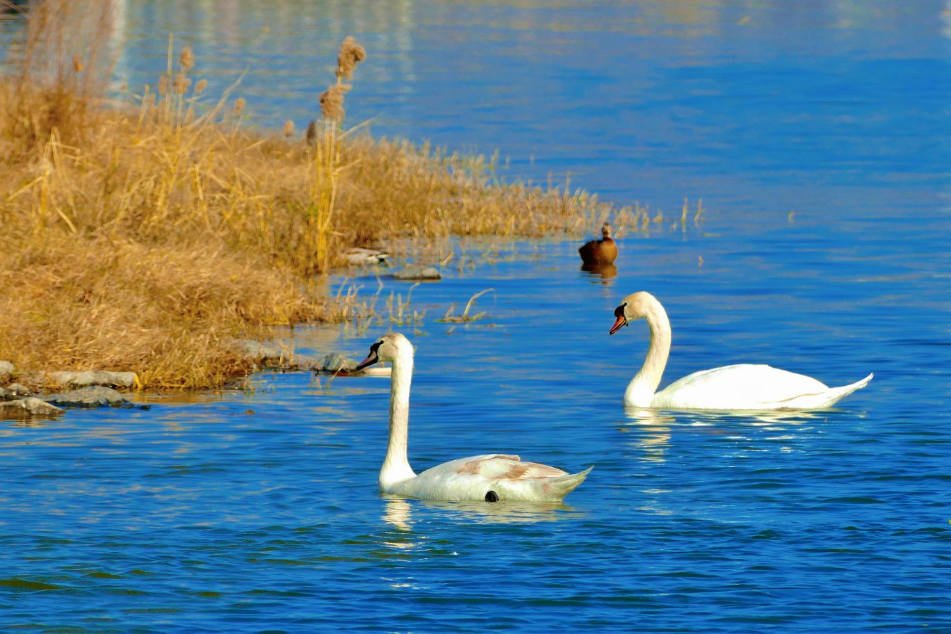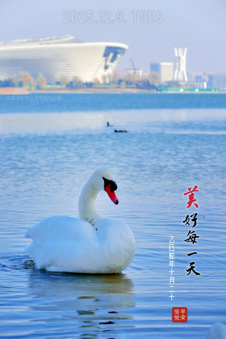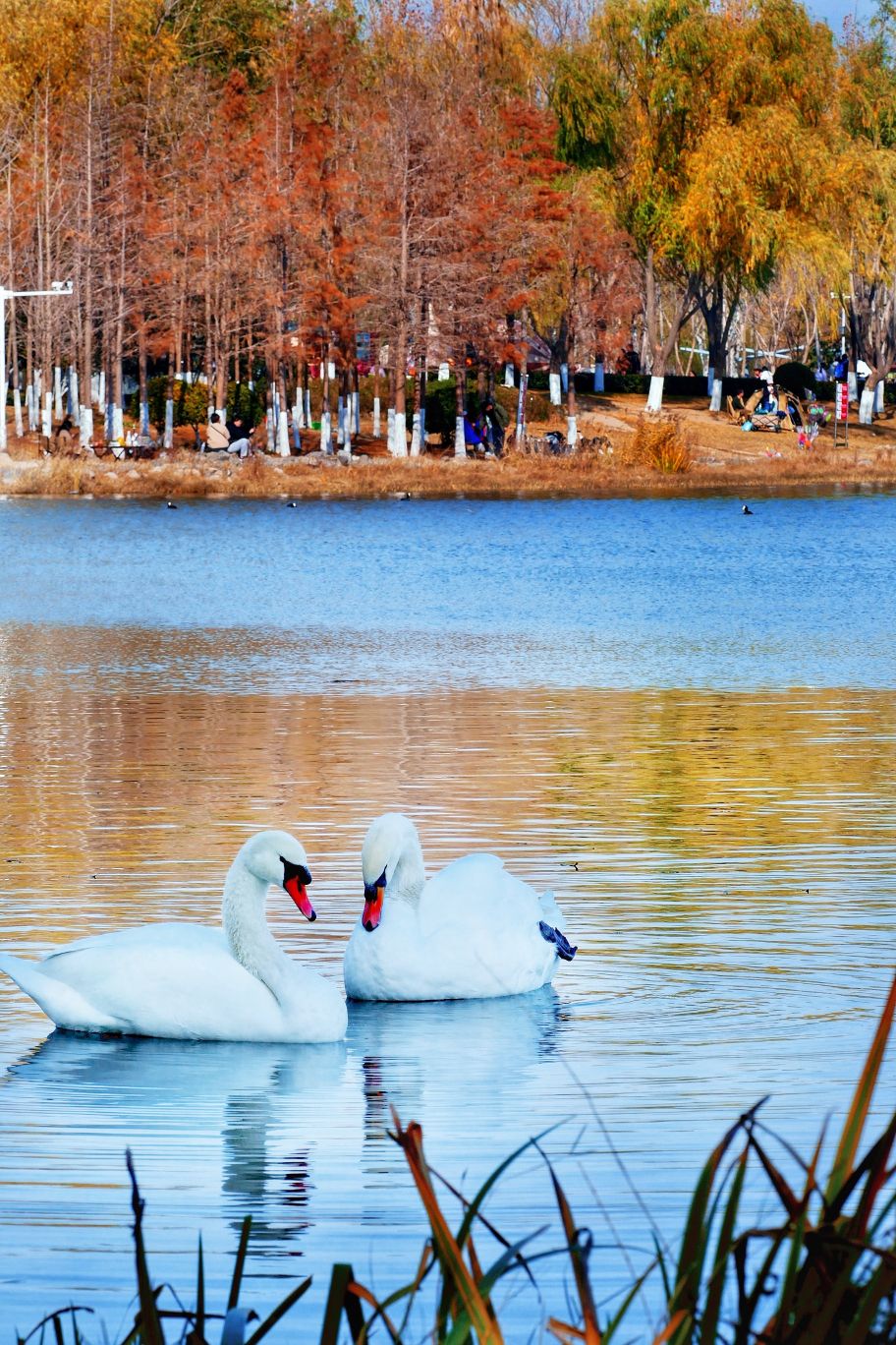 可喜的是,隨著水面的擴大,生態面貌有了極大改觀,湖里有了水生植物,有了魚,各種水禽如白骨頂、紅骨頂、鸊鷉、白鷺、綠頭鴨、夜鷺、蒼鷺等也都先后在鄭州安家落戶。2020年,疣鼻天鵝公主與王子在遷徙途中意外落單,降臨北龍湖,發現這是個宜居的地方,于是在熱心市民的保護下,它們在此生兒育女,由候鳥變留鳥,經過這么多年繁衍生息,已經形成一個百多只的疣鼻天鵝種群,每逢節假日,市民到北龍湖觀賞天鵝成為一大趣事。