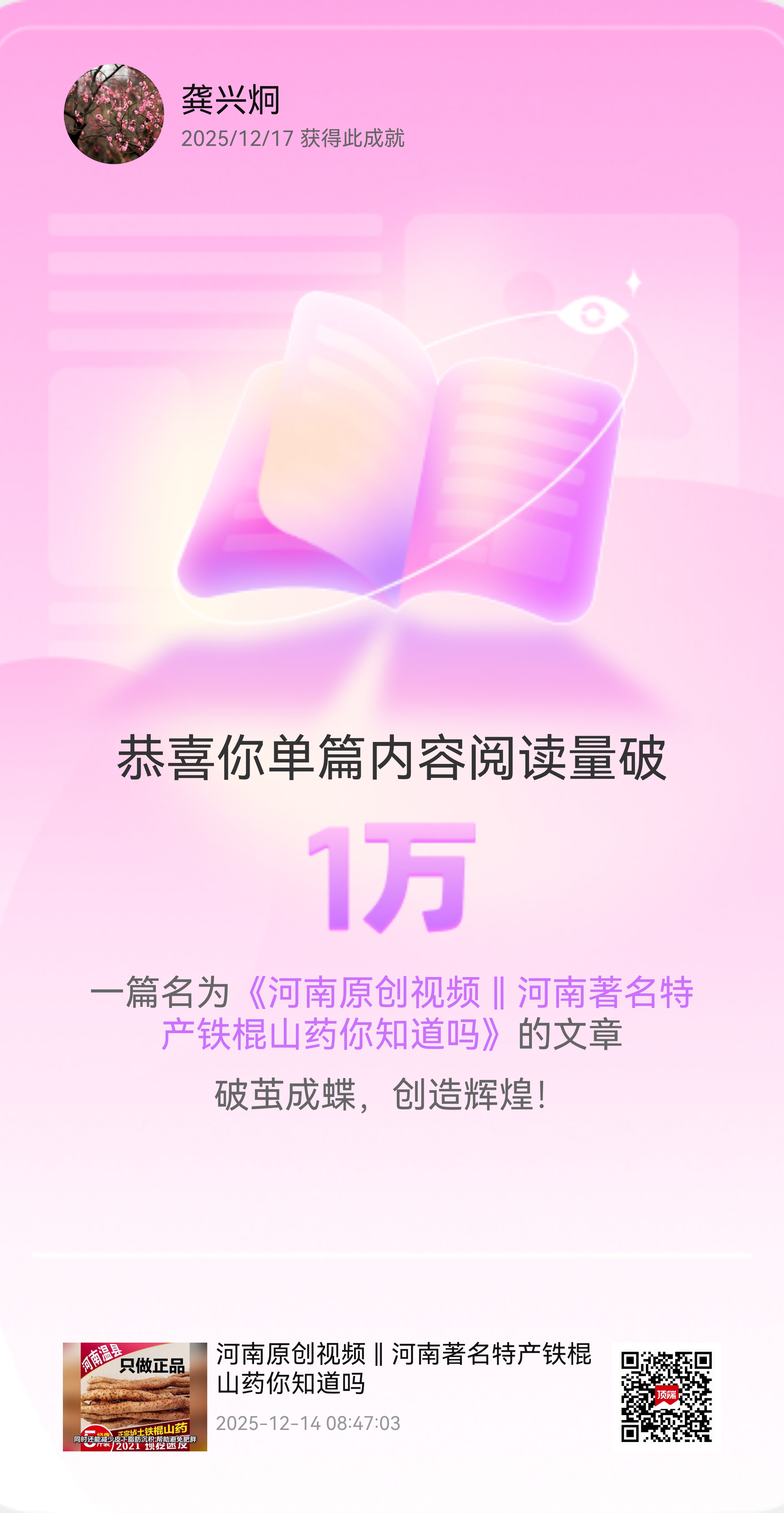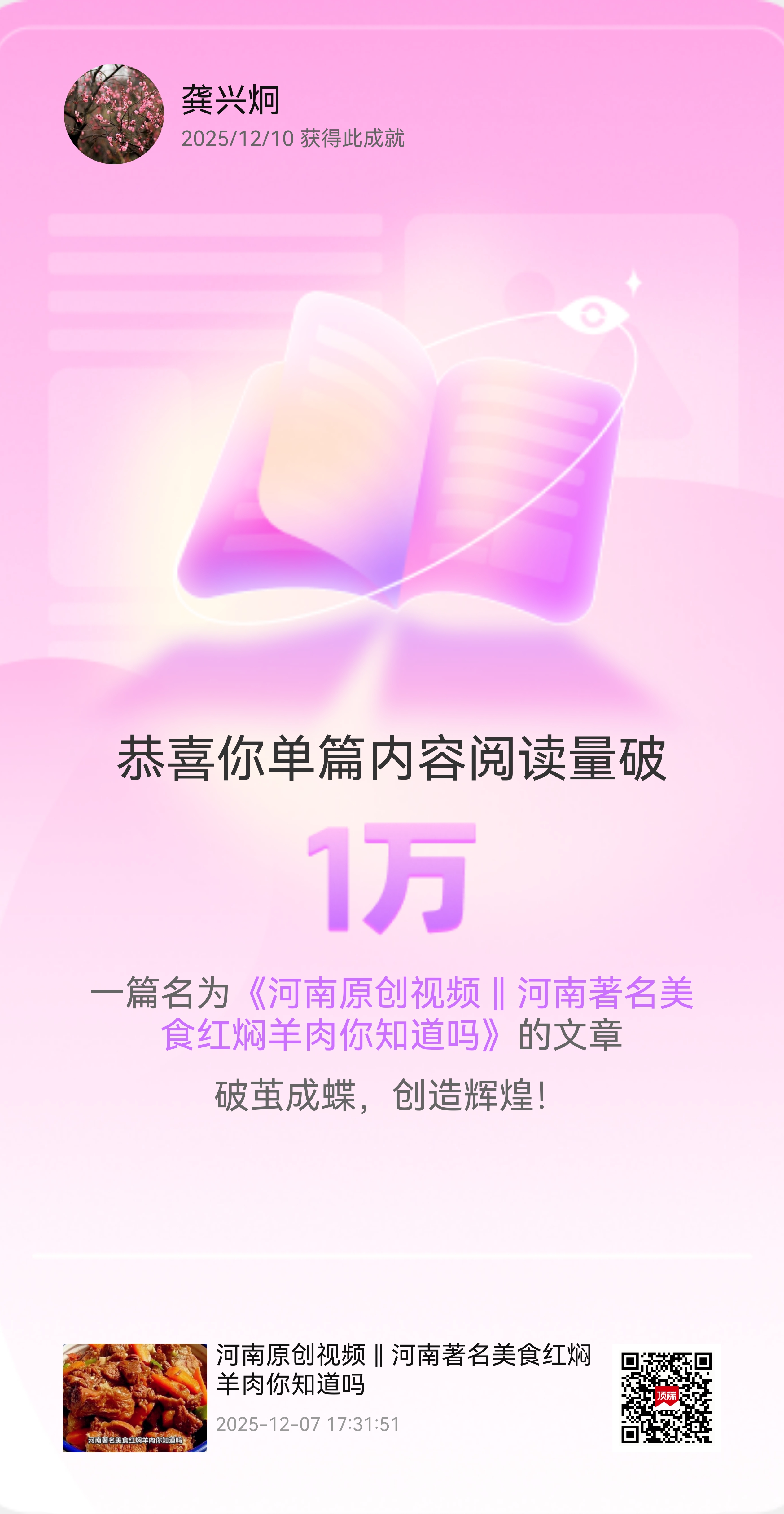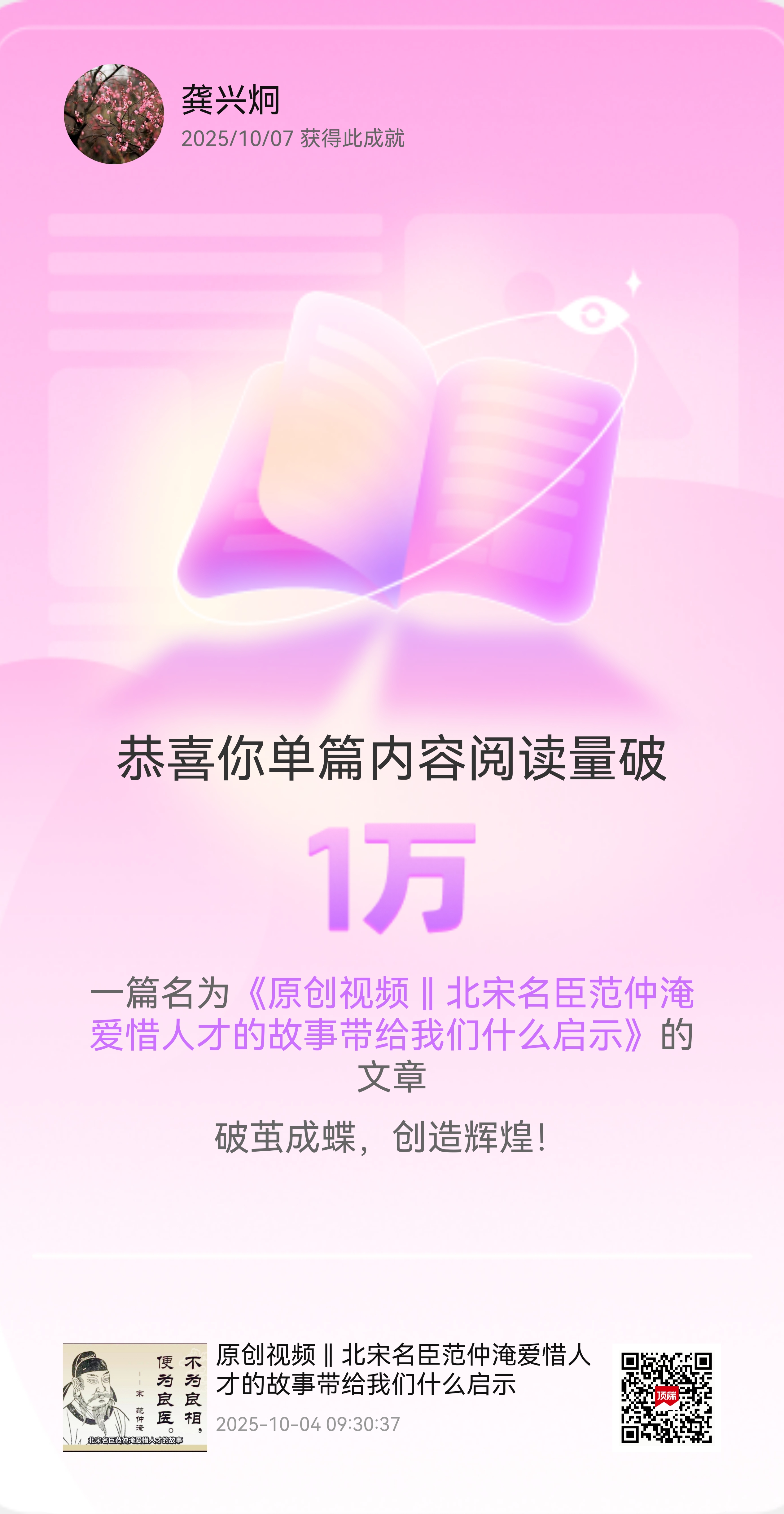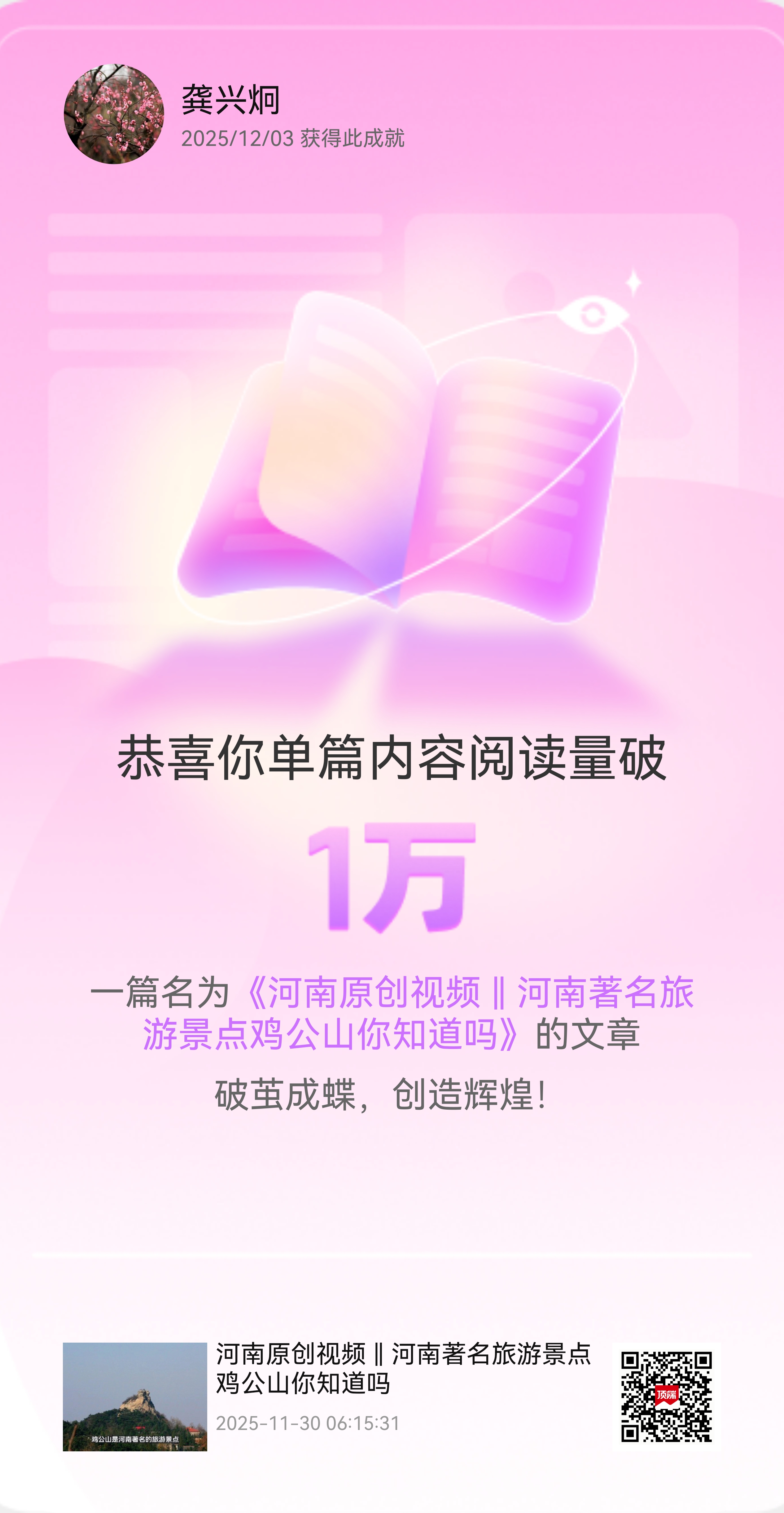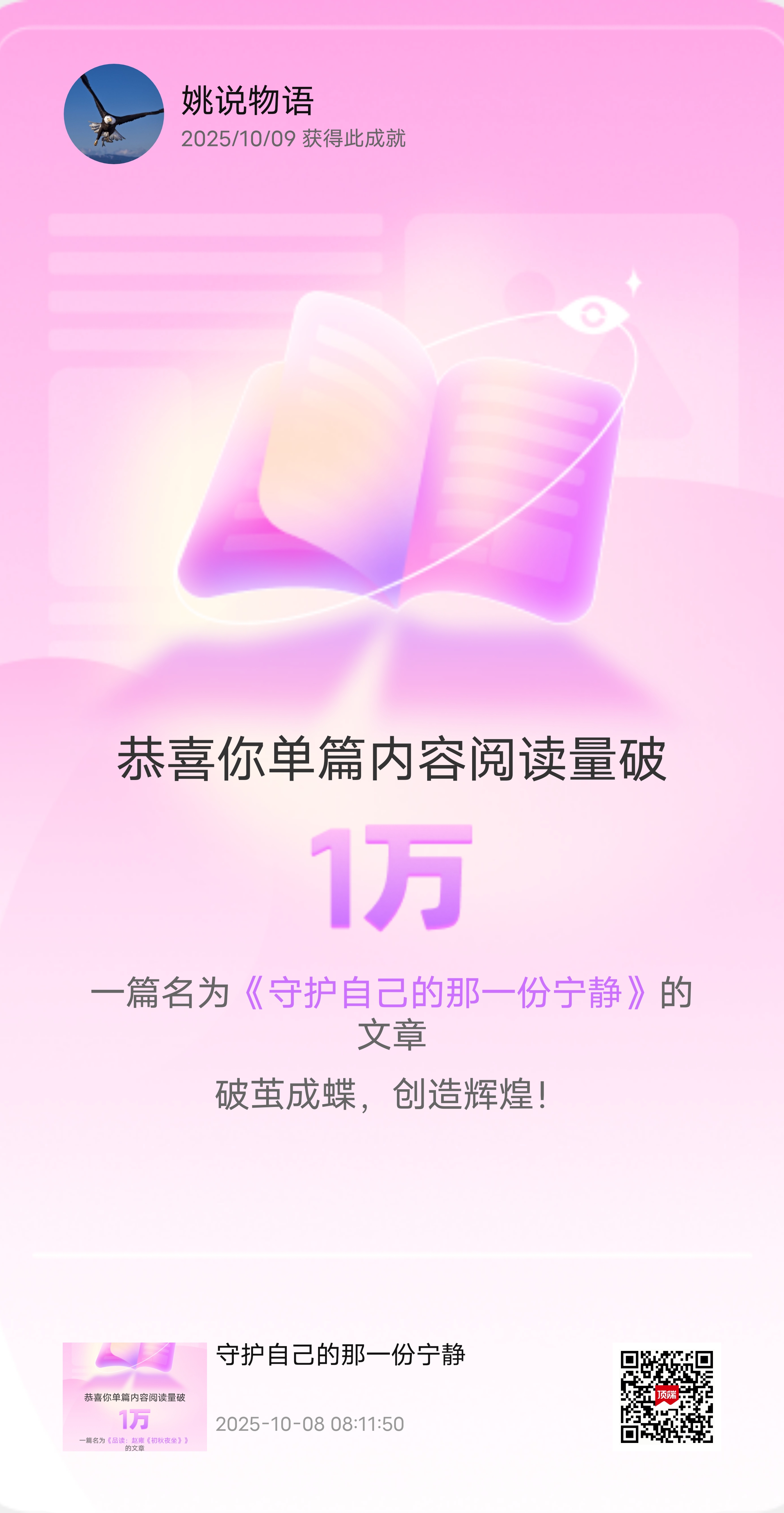 #分享我的頂端榮譽# 我在頂端單篇閱讀量破10000啦!