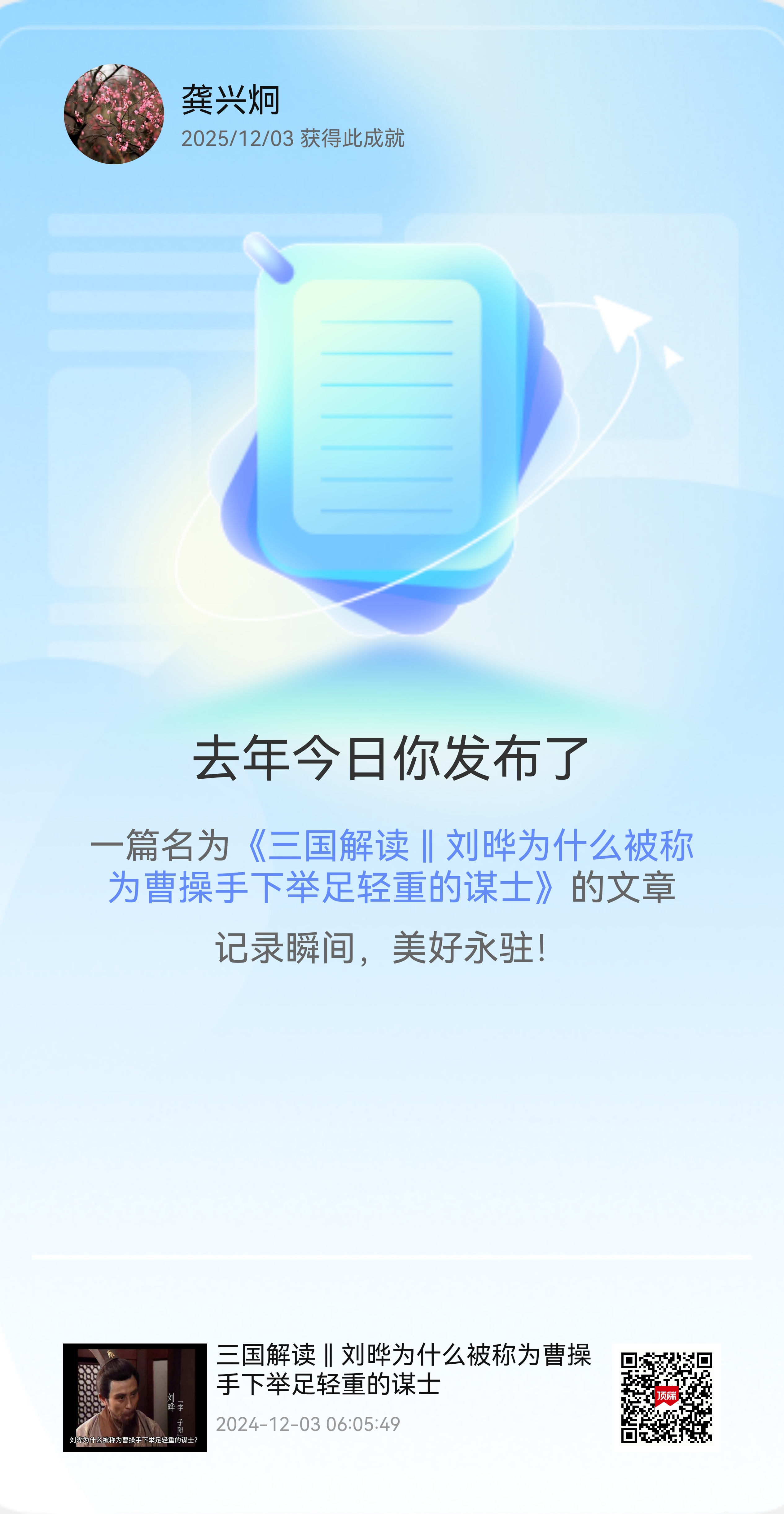 去年今日我在頂端發布了《三國解讀‖劉曄為什么被稱為曹操手下舉足輕重的謀士》!