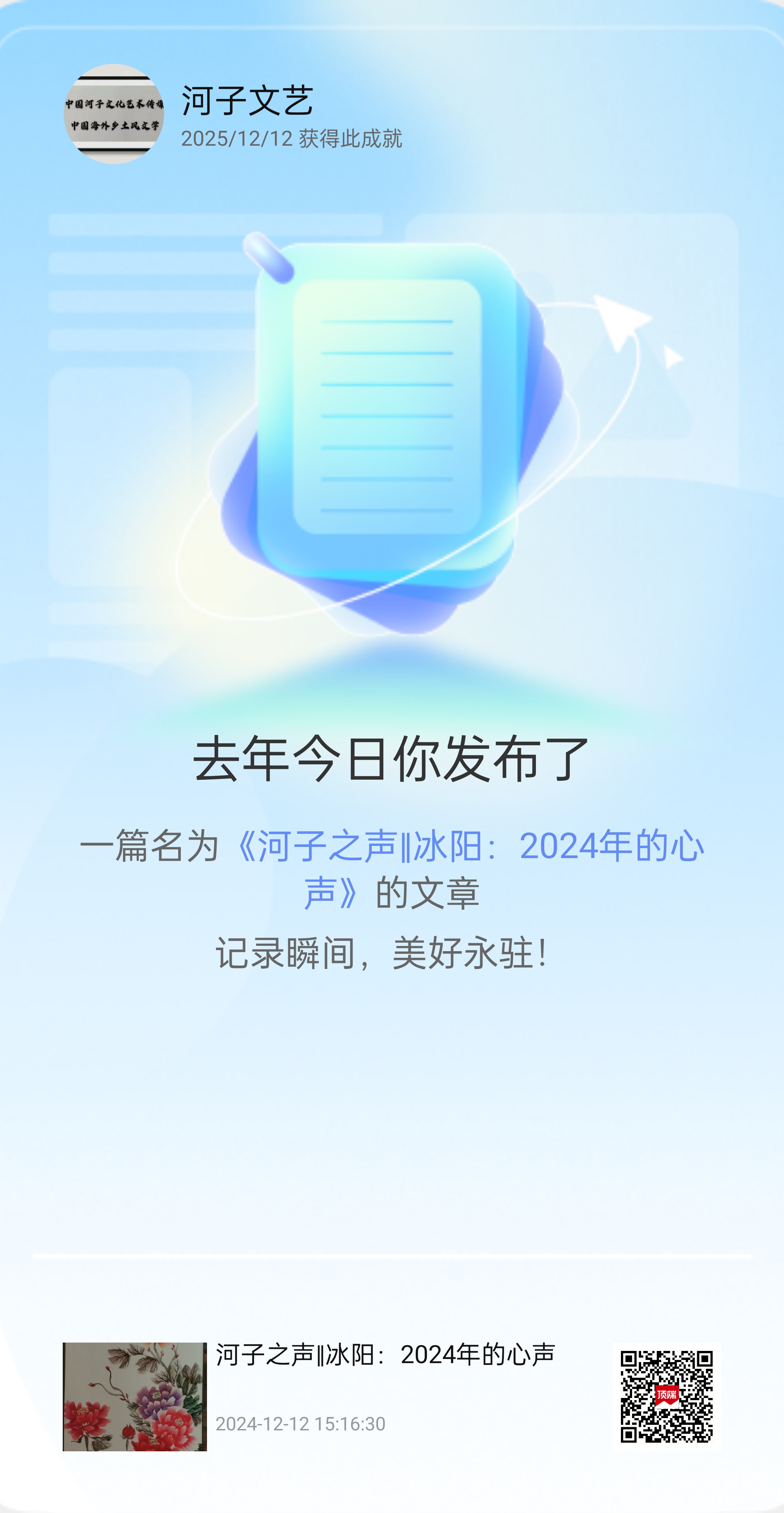 去年今日我在頂端發布了《河子之聲‖冰陽:2024年的心聲》!