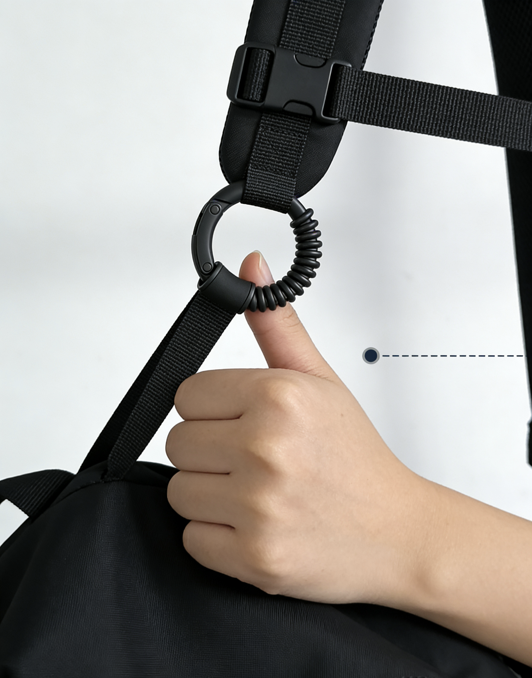背帶中段的環形結構,是對焦慮行為的隱性承接:人在緊繃時,會本能做出攥握、蜷縮動作,這個圓環恰好適配拇指伸入、手掌輕握的自然姿勢——無需刻意操作,肢體的包裹感便會在無意識間緩解焦慮,讓書包成為隱形的情緒緩沖帶。