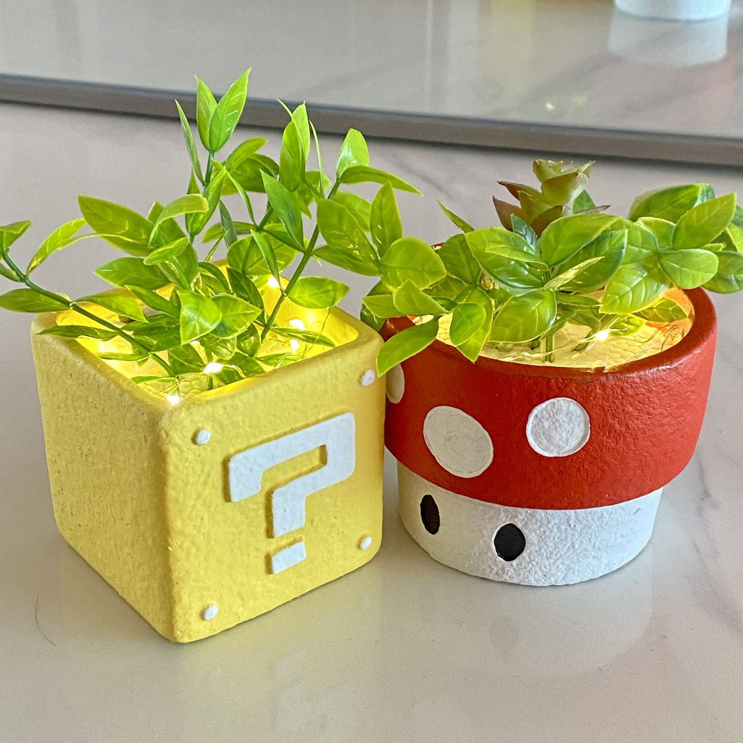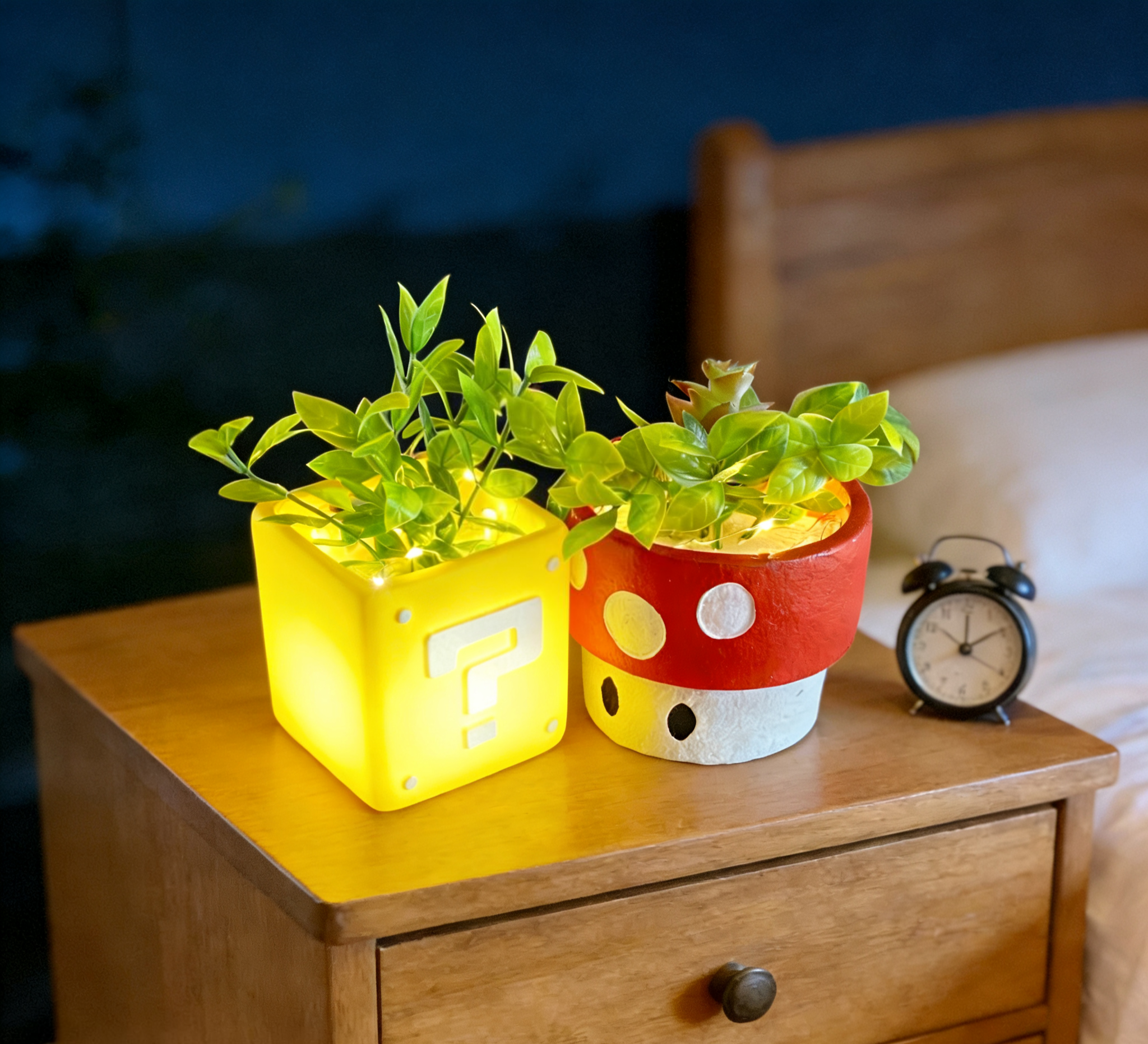 這款盆栽小夜燈以馬里奧元素為靈感,采用問號箱、蘑菇造型花盆,內置暖光燈帶,夜間點亮柔和不刺眼,既是桌面綠植裝飾,也是床頭氛圍小夜燈,實用又治愈...