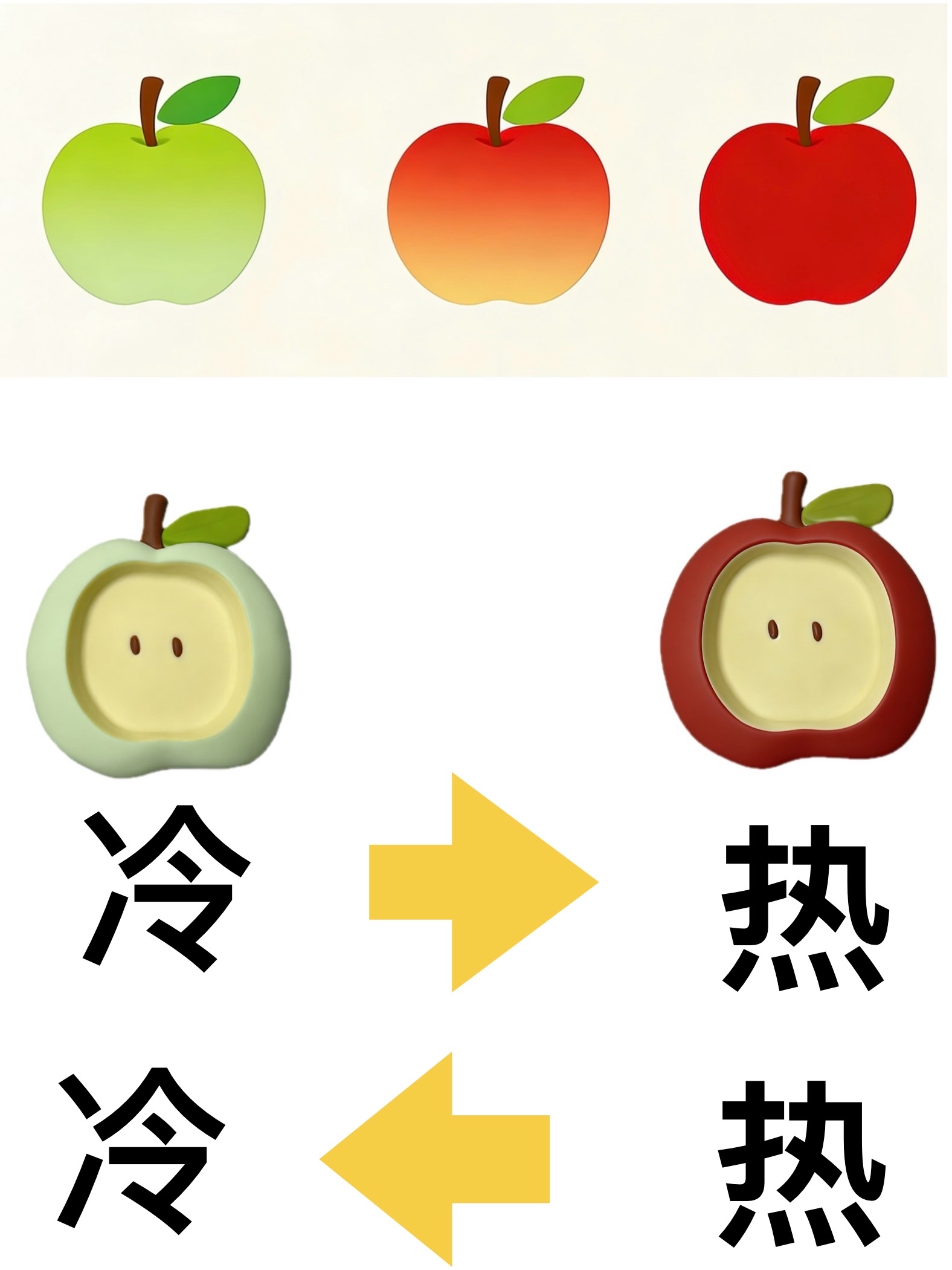 以“蘋果的生長周期”為核心創意,提取蘋果從青澀(綠色)到成熟(紅色)的色彩變化,結合溫感材質的特性,讓杯墊隨杯內飲品溫度呈現“青澀→成熟”的視覺轉換,既還原自然意象,又增加互動趣味。