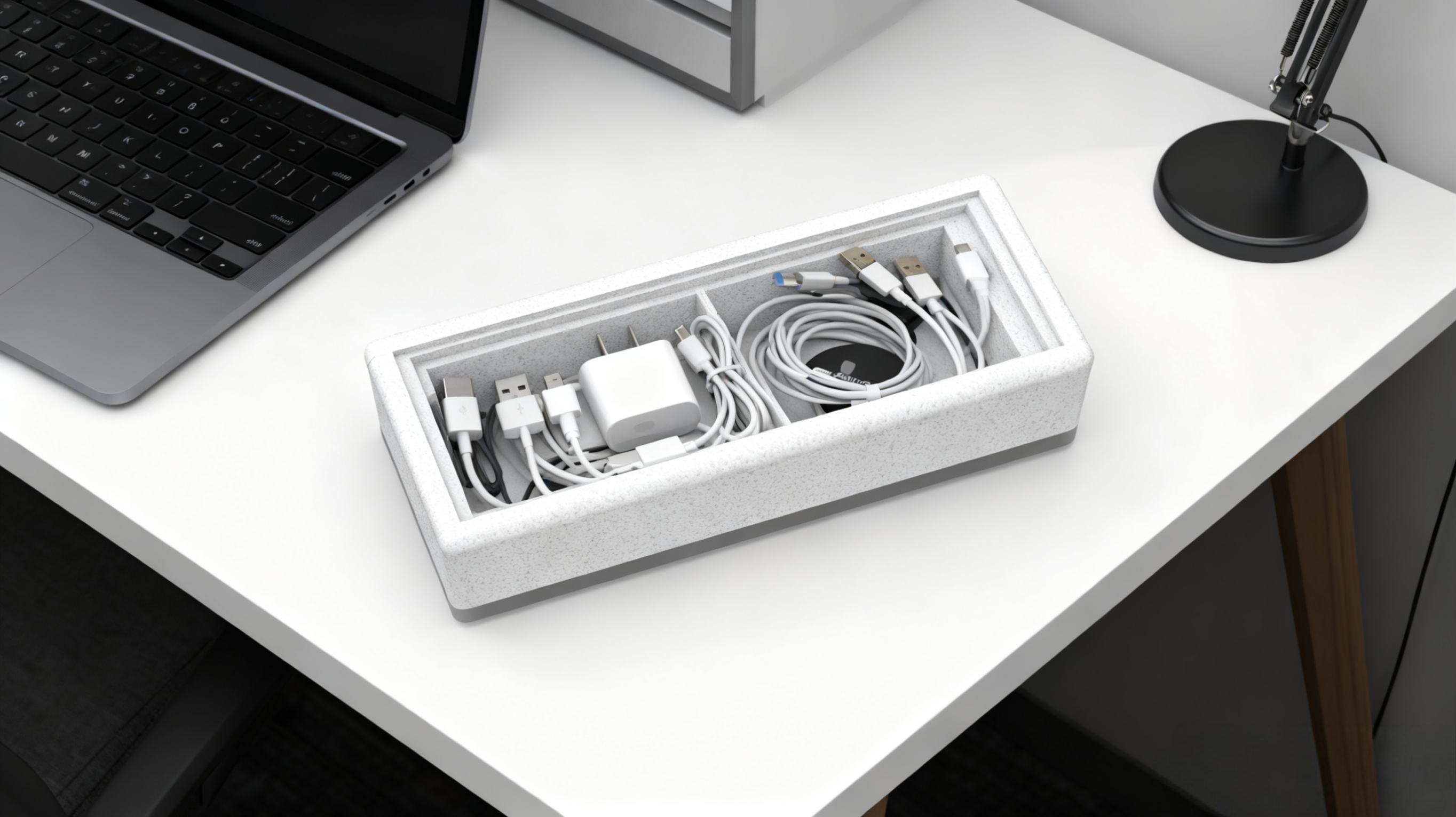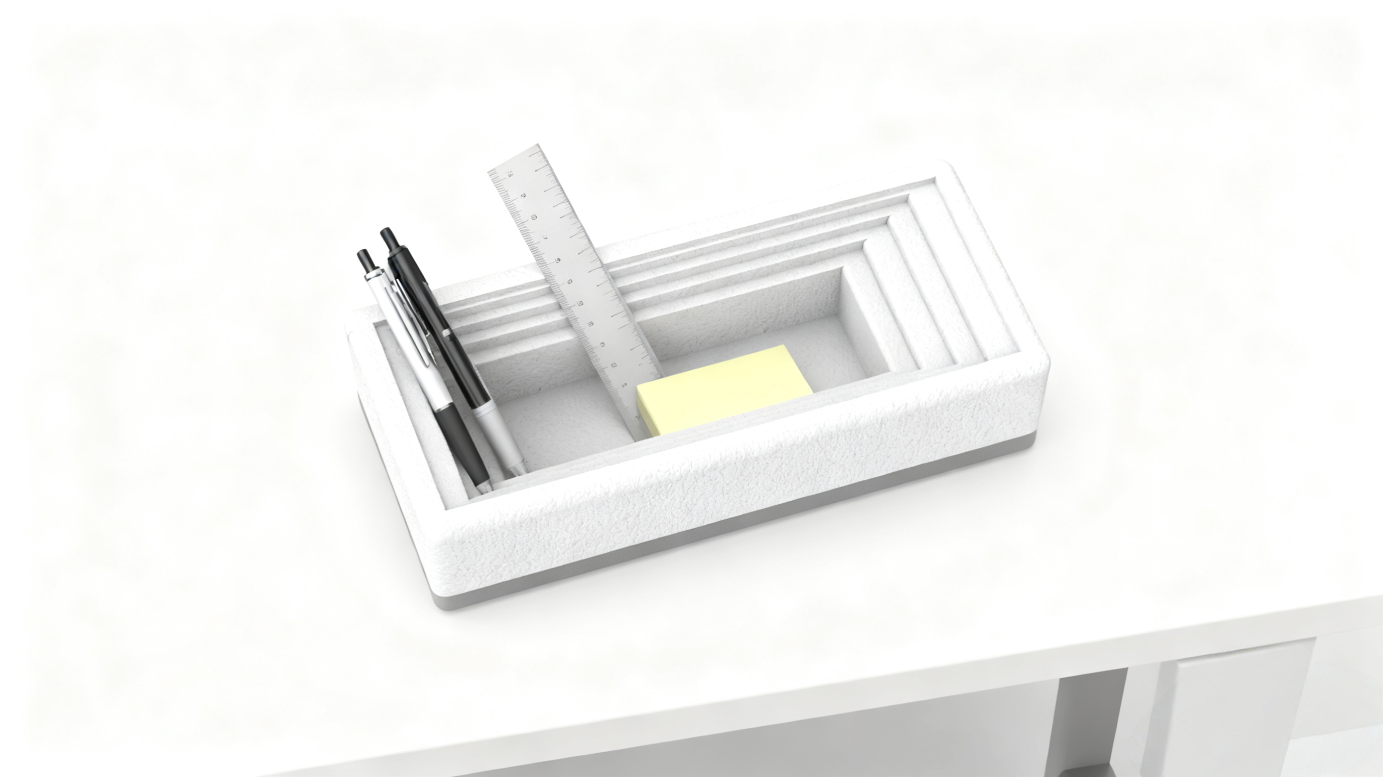 “貼合”收納盒以簡約實用為核心,采用多層嵌套結構,收納盒內壁凸起線條復刻手指蜷縮的自然弧度,放入物品時無意識貼合手部動作,減少“用力塞物”的動作成本,簡潔白色外觀,融入現代空間,在滿足日常存放需求的同時,以規整幾何形態傳遞秩序美感,讓收納行為自然且貼合生活。
