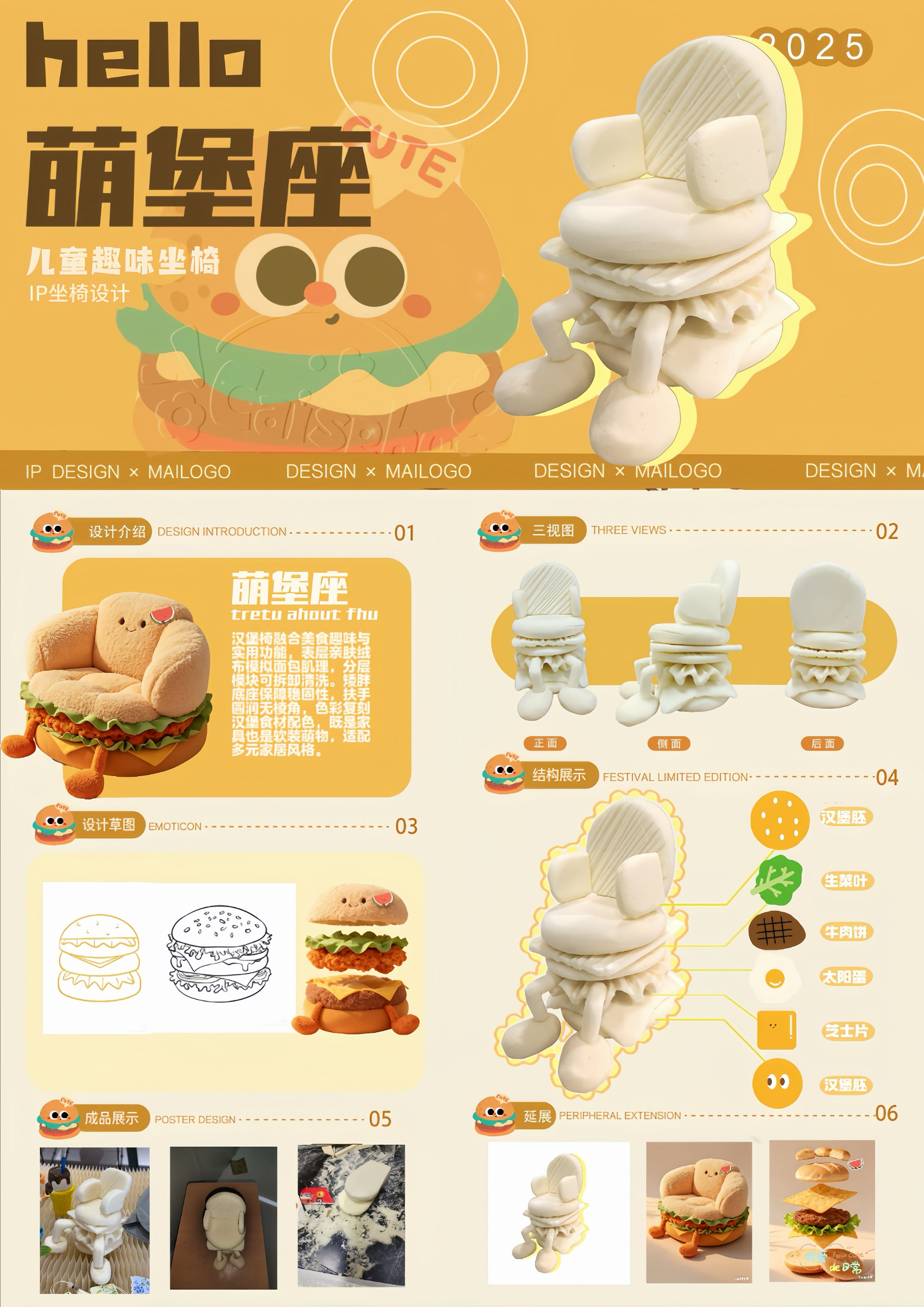 “萌堡座”是一款以漢堡為核心IP的兒童趣味坐椅,將美食童趣與實用功能深度融合,打破傳統兒童家具的單調形態,打造兼具玩趣感與適配性的生活好物。