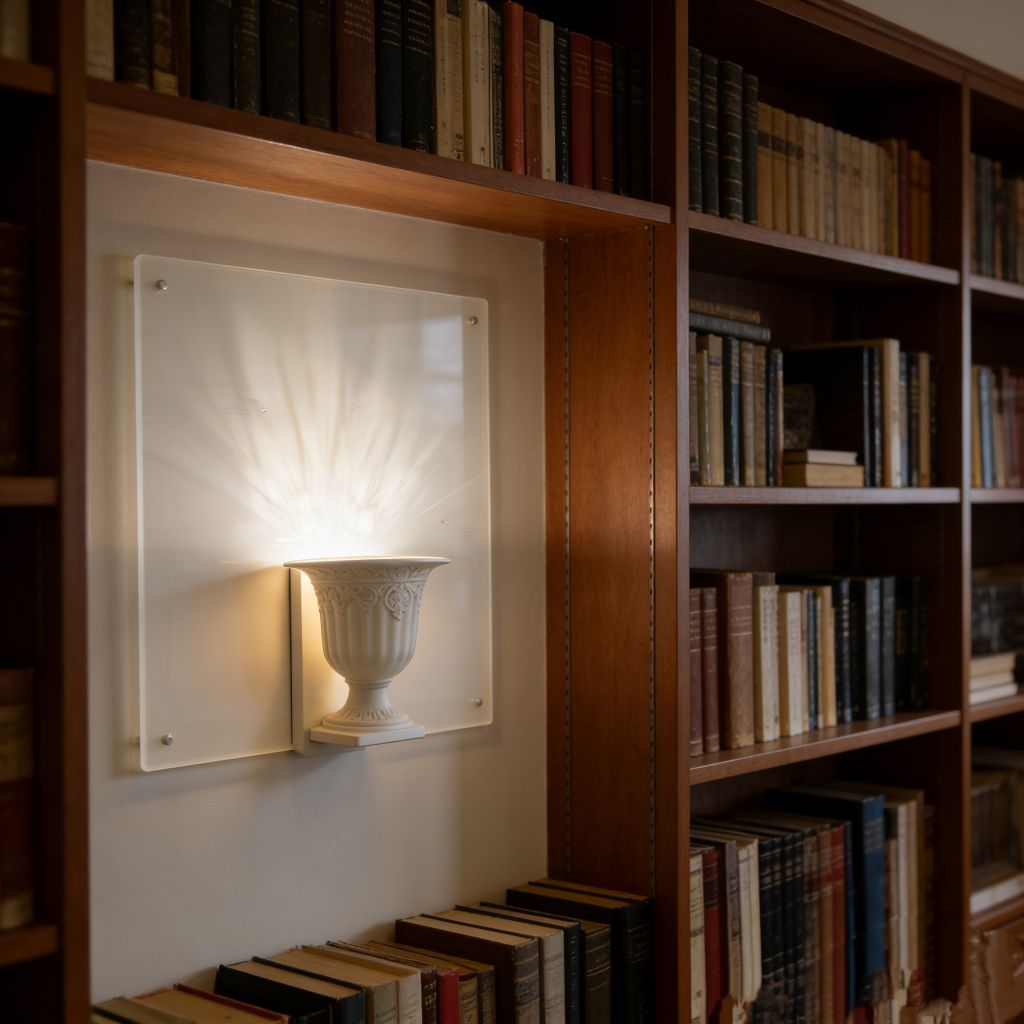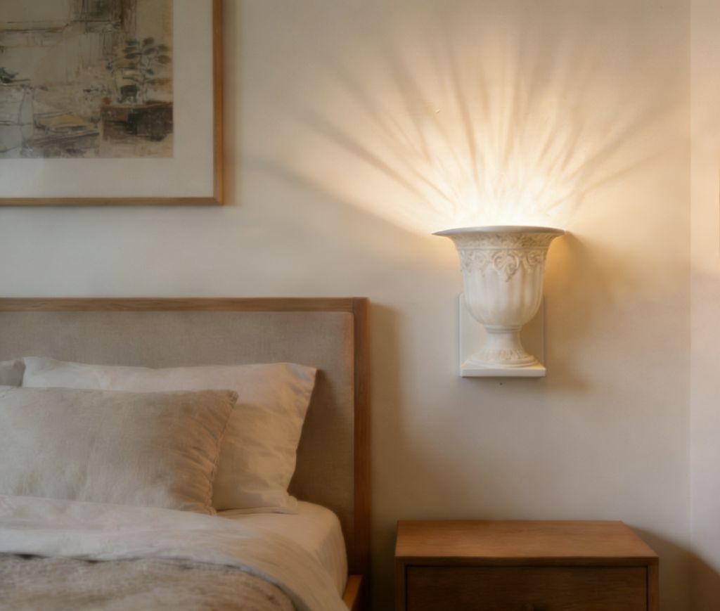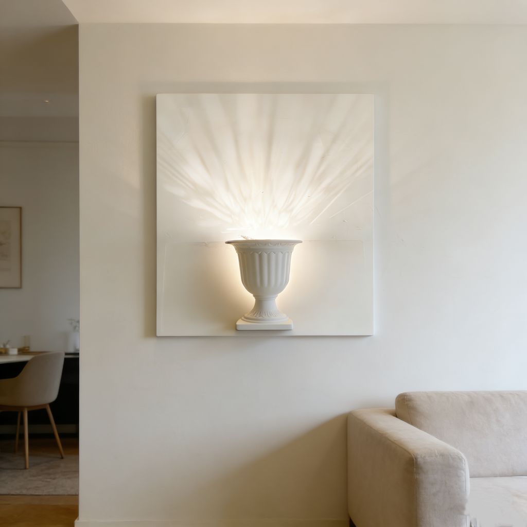 它打破“燈具僅為照明”的功能邊界,以古希臘陶甕式花器為載體(適配新中式/輕法式空間),通過光影投射節氣物候,讓“春生夏長、秋收冬藏”的自然韻律,成為墻面流動的“時光詩”。