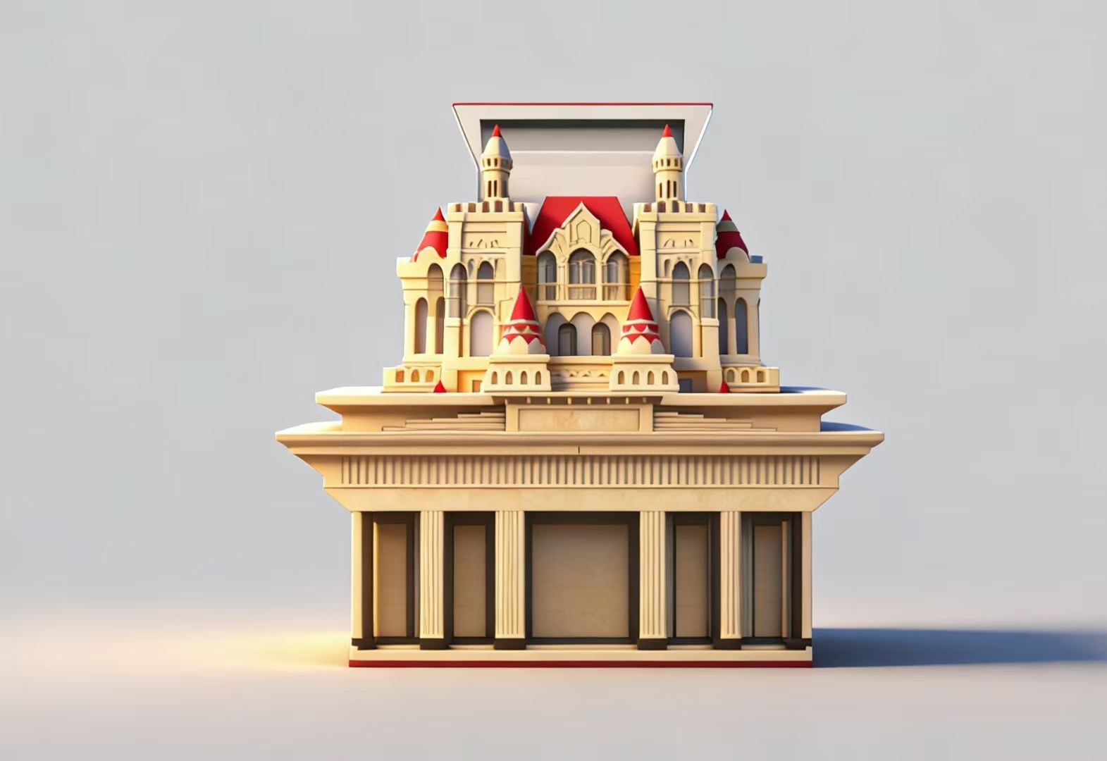 產品整體采用ABS環保樹脂材質,表面經啞光UV工藝處理,觸感細膩且防刮耐磨,適配家居、辦公等多場景擺放。尺寸設計遵循“黃金嵌套比例”,底層“校園大門”高8cm、寬10cm,兩側立柱復刻原建筑的線條,細節還原校門的莊重感;中層“校園城堡”高6cm、寬8cm,以校園內標志性城堡式建筑為原型,簡化尖頂、拱窗等元素,保留哥特式建筑的靈動輪廓,窗欞處采用鏤空設計,可透出內部微光(內置紐扣電池,長按底座即可點亮);頂層“校園圖書館”高4cm、寬6cm,提取圖書館的坡屋頂、玻璃幕墻特征,屋頂處微縮“翻開的書本”造型,象征知識傳承,三者嵌套后整體高度僅8cm,不占用多余空間,拆分后可作為獨立擺件組合陳列。色彩搭配以“校園記憶色”為基調,大門采用黃色,呼應校園建筑的沉穩質感;城堡選用淺米黃色,還原石材建筑的溫暖肌理;圖書館以米白色為主,搭配透明亞克力材質的“玻璃幕墻”,展現人文與現代的融合。此外,底座內置磁吸裝置,三段式結構可通過磁力穩固銜接,避免擺放時傾倒。支持定制化校名與年份,增強專屬感。