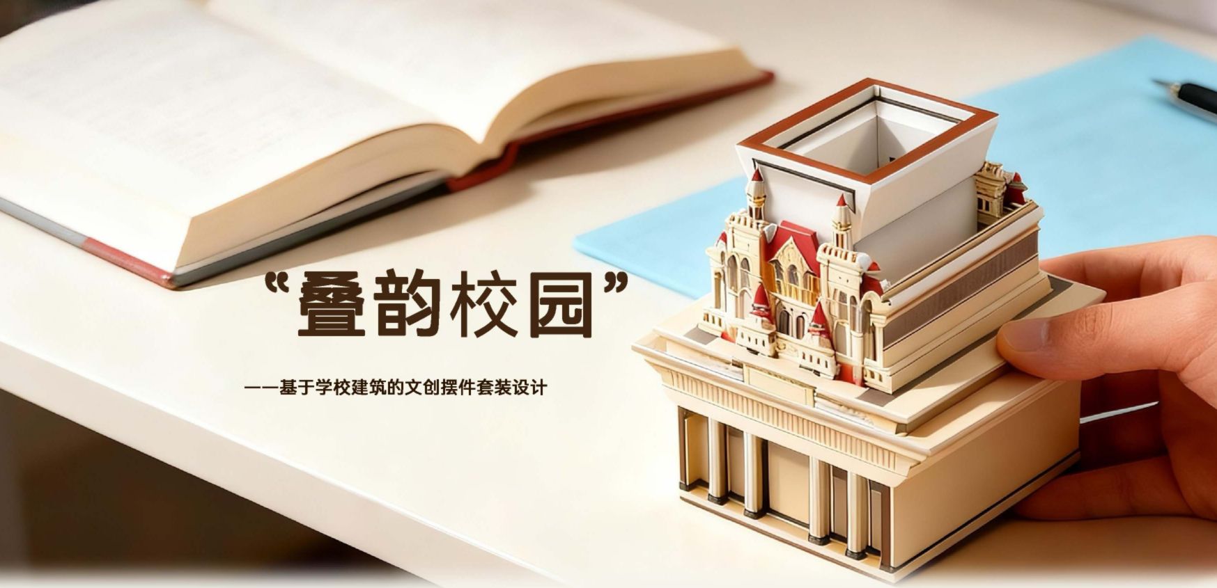 “疊韻校園”主題文創擺件以“空間嵌套·記憶疊合”為核心設計理念,將校園標志性建筑——大門、城堡、圖書館提煉為可層層嵌套的三段式結構,用微縮模型還原校園空間記憶,兼具觀賞性與收納實用性。