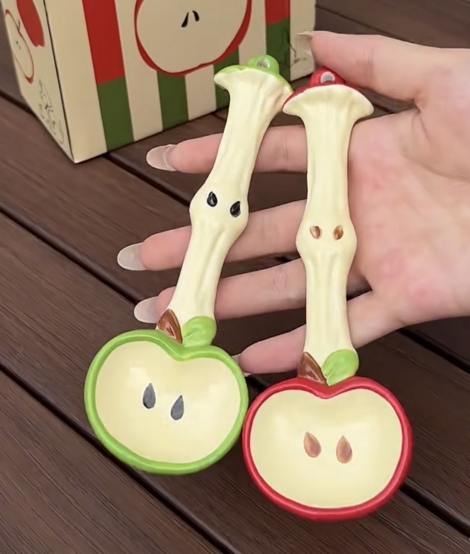 色彩方案選取嫩綠色、暖黃色與櫻桃紅為主調,既呼應蘋果的自然果色,又通過柔和的配色營造溫馨的飲食氛圍。這款設計將安全警示功能與童趣美學結合,從材質選擇、造型設計到色彩搭配,全方位圍繞兒童的飲食安全與使用體驗展開,讓輔食勺不僅是進食工具,更是陪伴孩子成長的貼心設計。