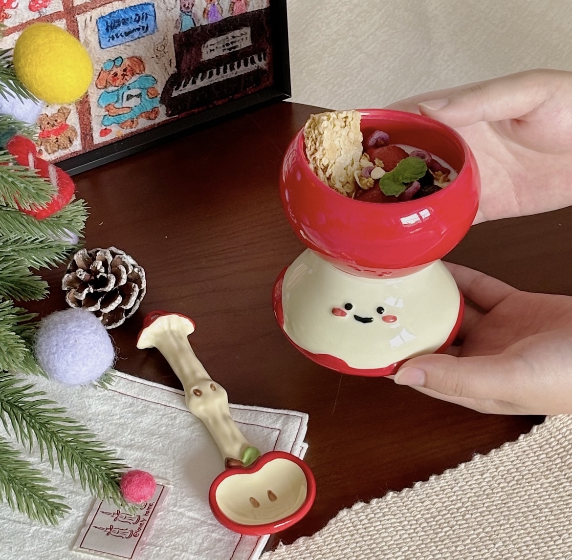 通過“自然意象+實用功能”的結合,讓日常用品兼具裝飾性與互動性:既以可愛的蘋果造型適配治愈系生活場景,又能通過色彩變化直觀提示飲品溫度,實現“美觀”與“實用”的雙重體驗。