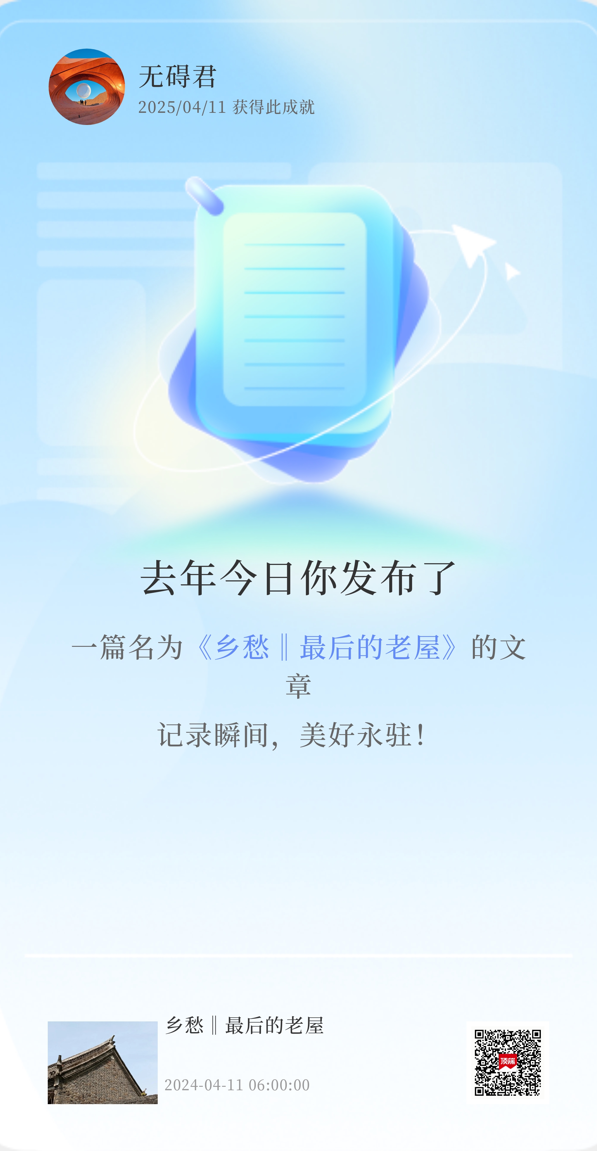 去年今日我在頂端發布了《鄉愁‖最后的老屋》!
