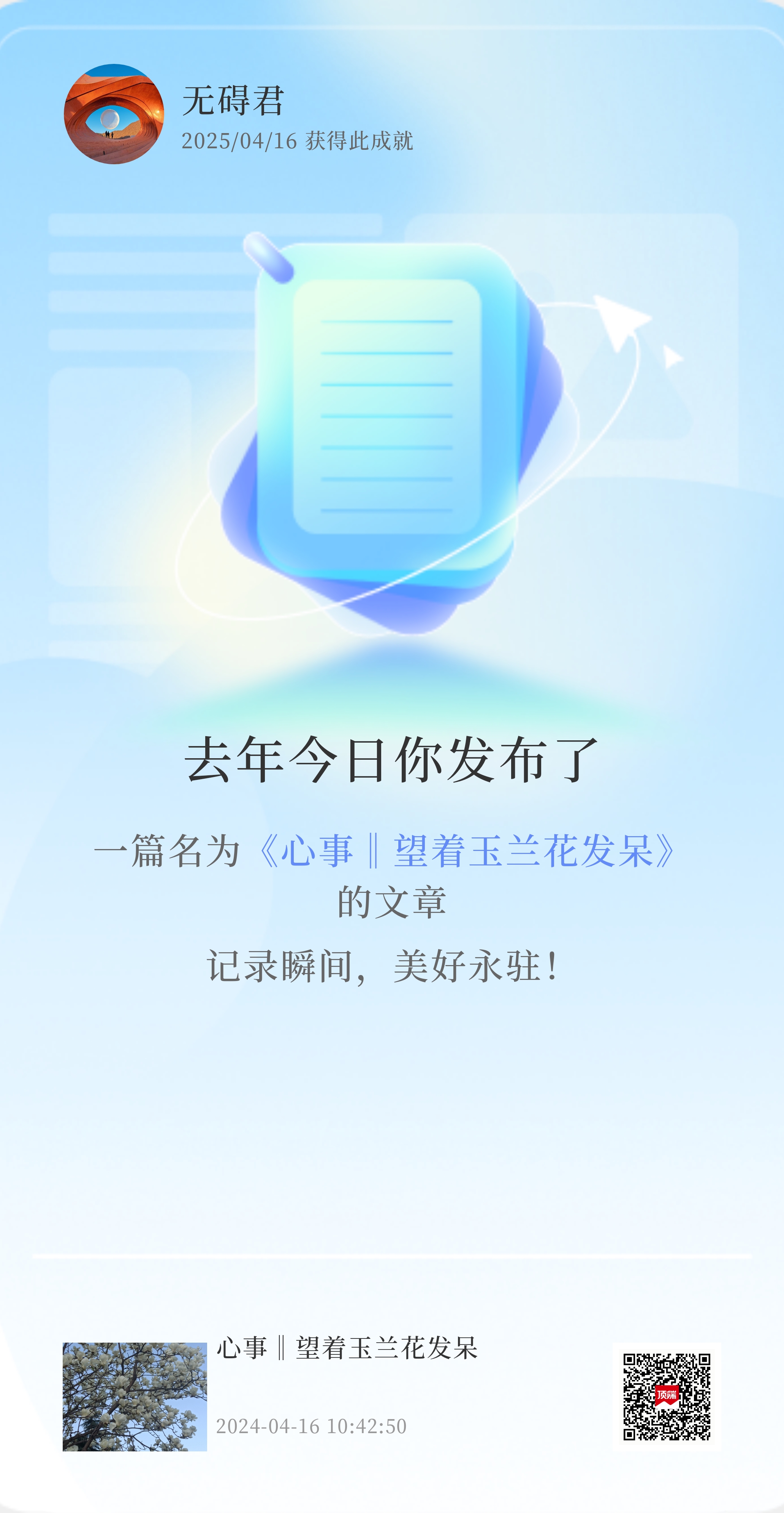 去年今日我在頂端發布了《心事‖望著玉蘭花發呆》!