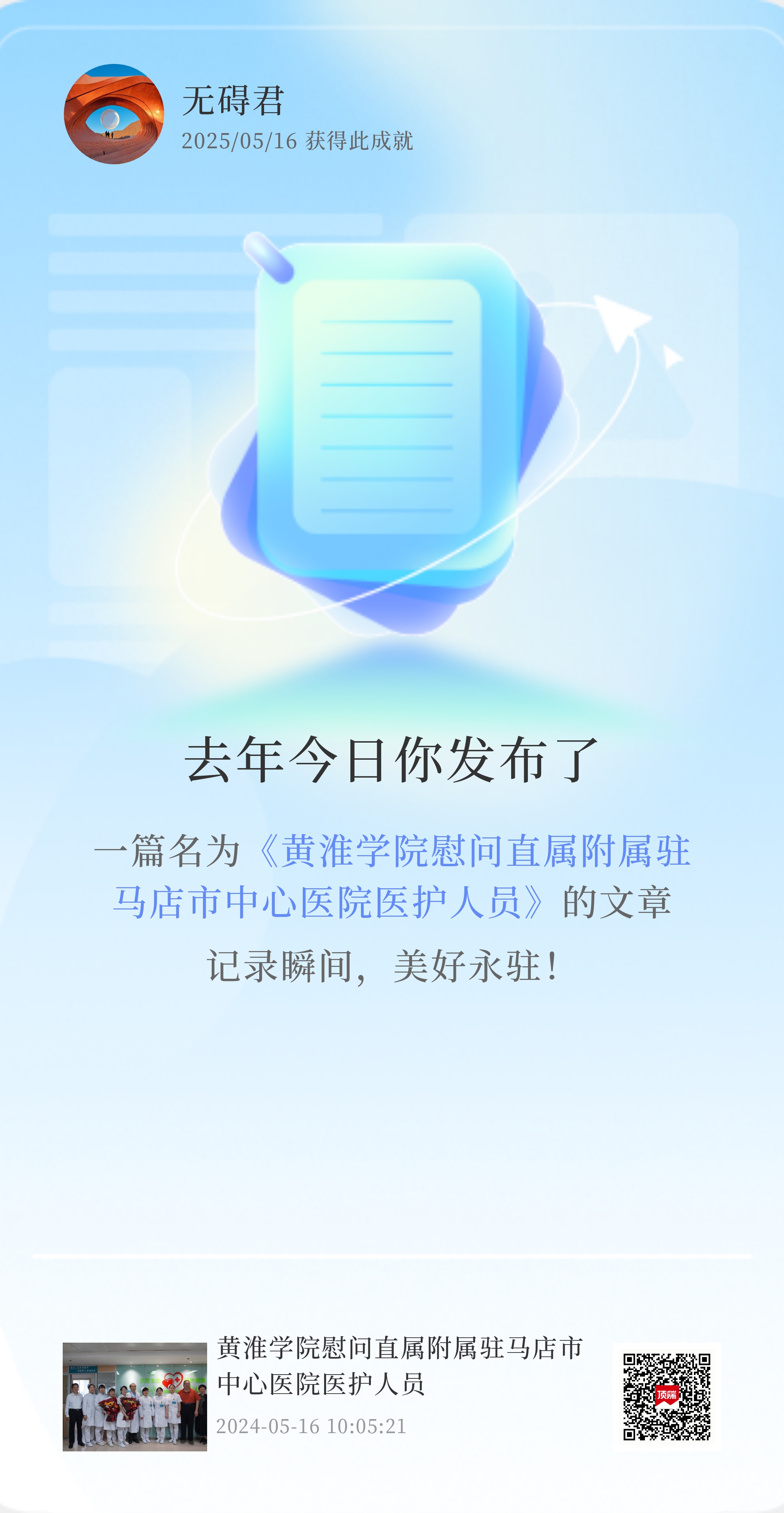 去年今日我在頂端發布了《黃淮學院慰問直屬附屬駐馬店市中心醫院醫護人員》!