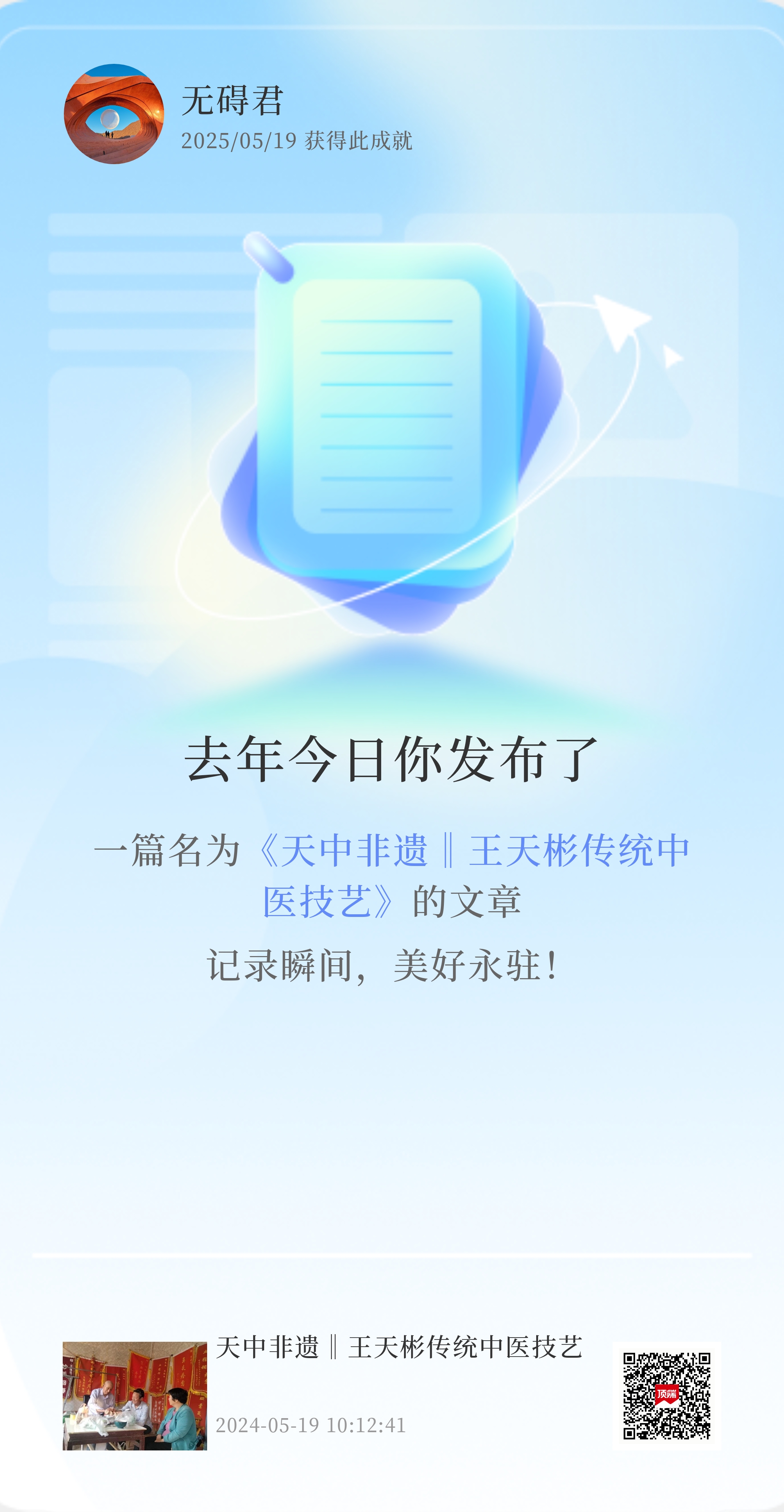 去年今日我在頂端發布了《天中非遺‖王天彬傳統中醫技藝》!
