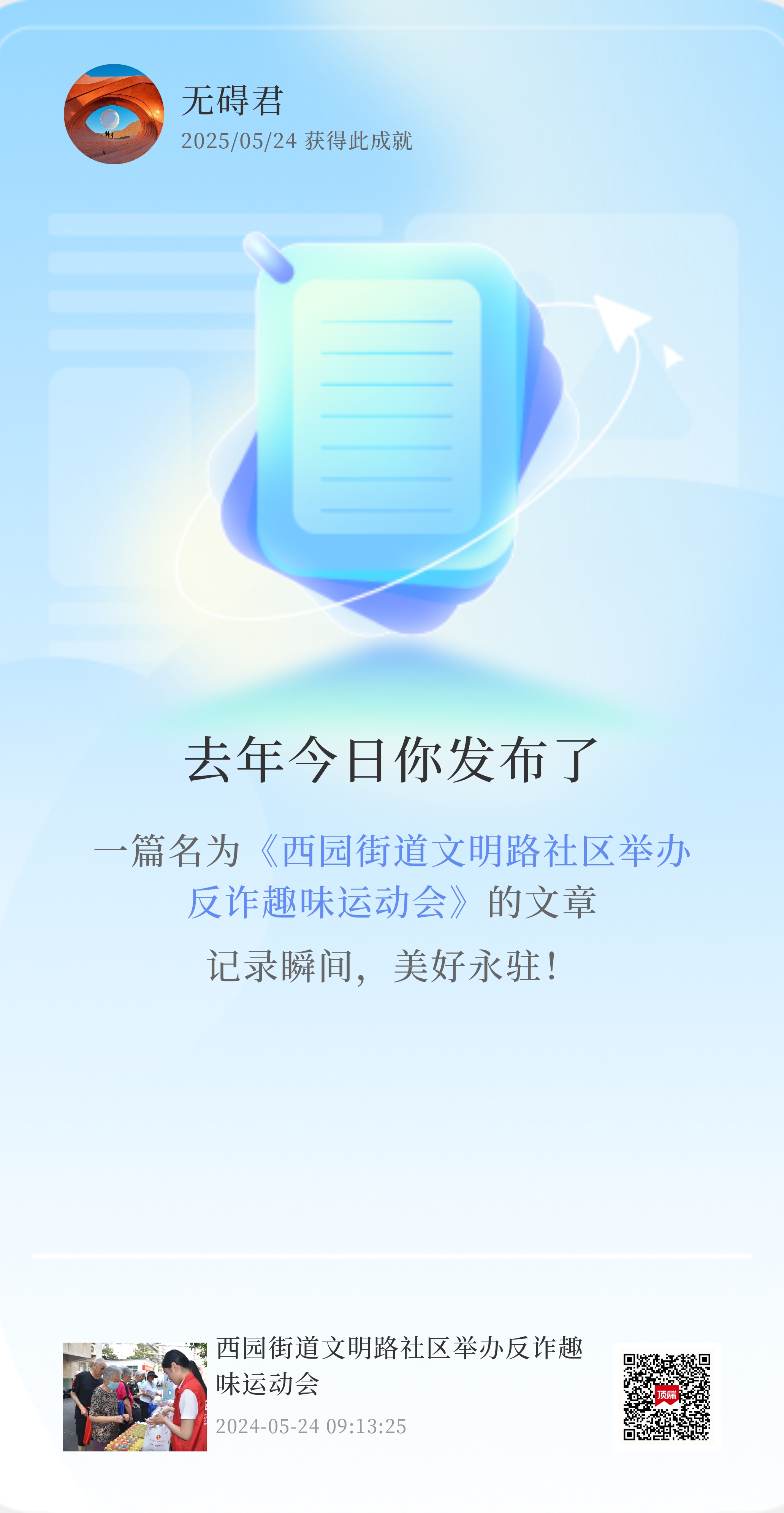 去年今日我在頂端發布了《西園街道文明路社區舉辦反詐趣味運動會》!