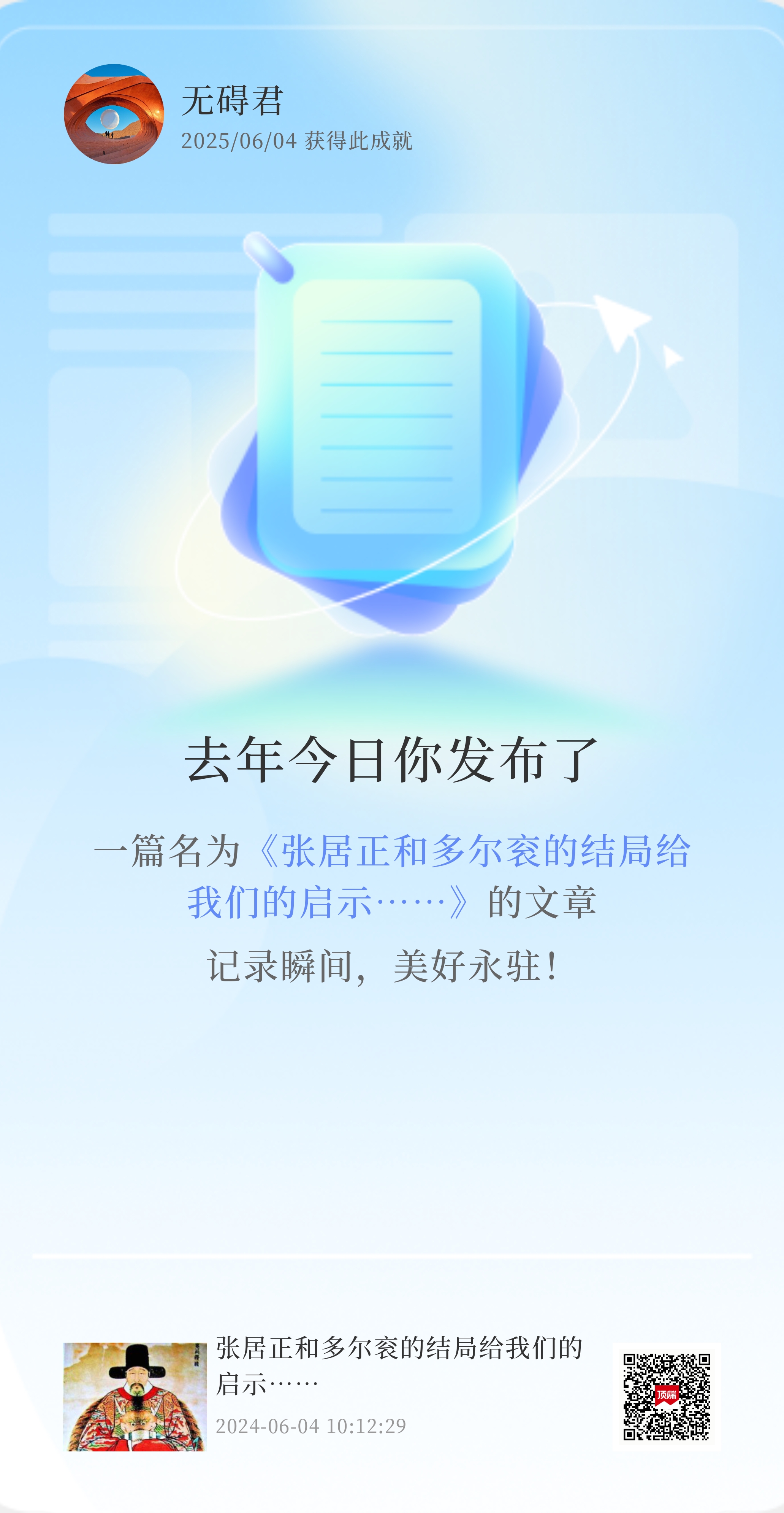 去年今日我在頂端發布了《張居正和多爾袞的結局給我們的啟示……》!
