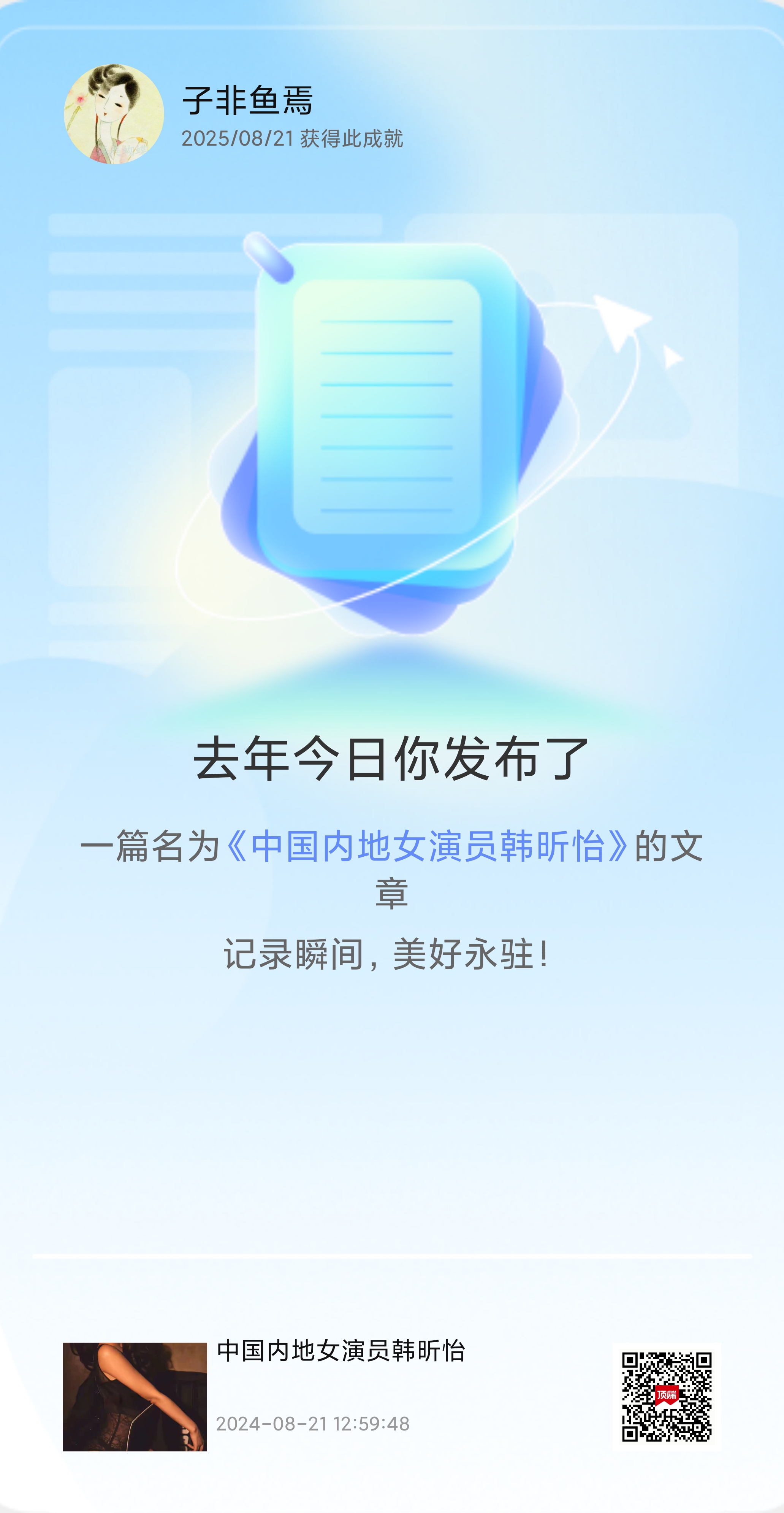 去年今日我在頂端發布了《中國內地女演員韓昕怡》!