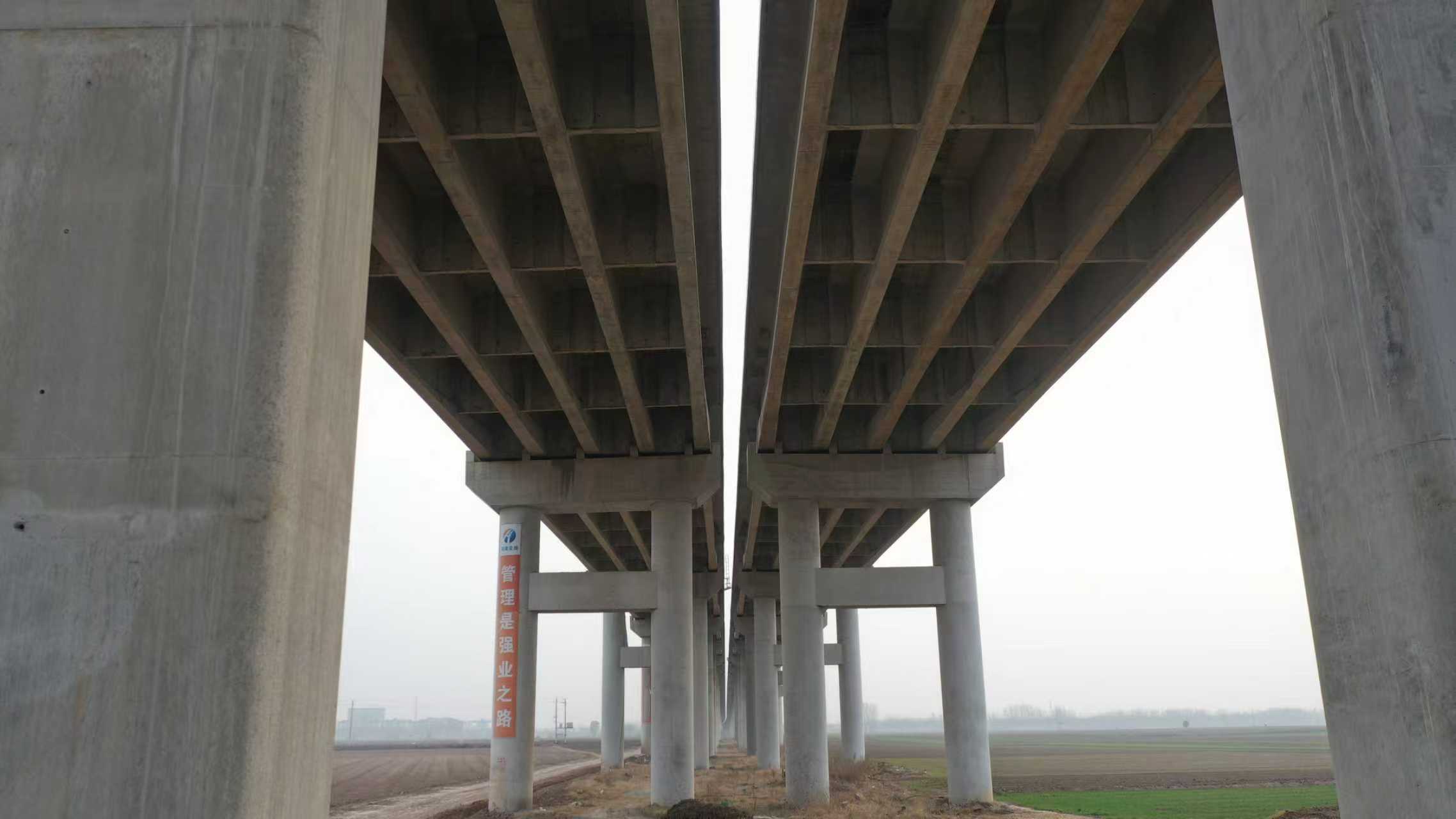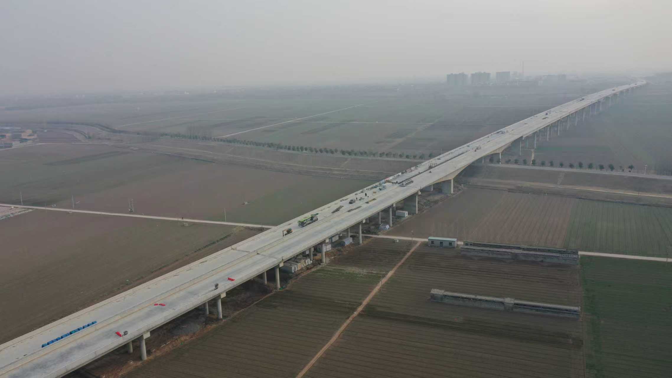 沁河特大橋是焦平高速焦作至滎陽段項(xiàng)目全線的一個關(guān)鍵控制性工程,橋梁全長1973米,橋梁雙幅,單幅寬度12.8米。主要分為大堤外引橋、大堤內(nèi)引橋、跨北大堤橋、主橋四個部分。該橋自2023年3月27日開始首根樁基施工,2024年11月7日完成下部結(jié)構(gòu)施工,2025年11月25日完成橋面鋪裝,12月9日完成護(hù)欄施工。