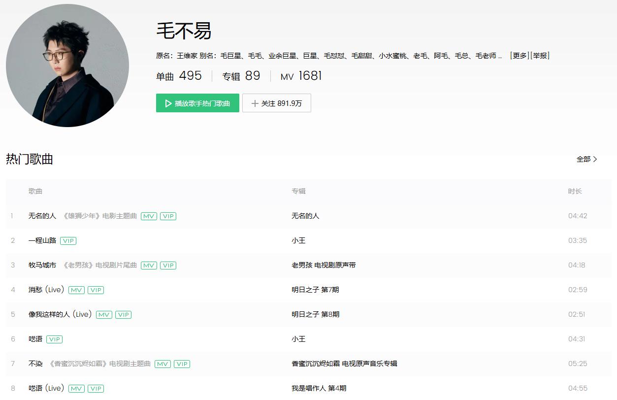 大家可以看看當下華語樂壇的一部分歌手,風格單一的并非毛不易一人,多數歌手都是風格單一的。
