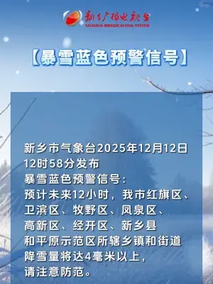 暴雪藍色預警信號 #新鄉天氣 #暴雪 #暴雪藍色預警