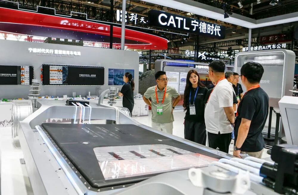 2025年7月16日,參會者在北京舉行的第三屆中國國際供應鏈促進博覽會智能汽車鏈展區了解寧德時代神行PLUS電池。新華社記者 丁洪法 攝