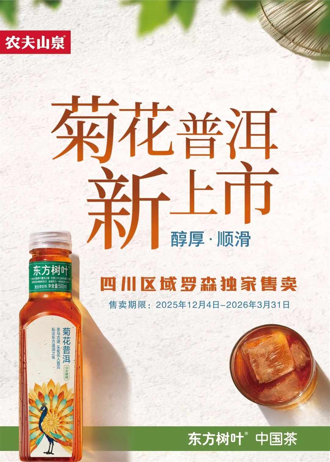 種種跡象表明,東方樹葉菊花普洱的市場布局已經按下加速鍵,2026年或將成為農夫山泉又一款“王牌新品”。