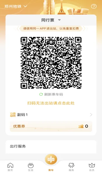 4.出站時(shí)因無(wú)進(jìn)站信息無(wú)法出站,可通過(guò)鄭州地鐵商易行 APP“乘車”界面點(diǎn)選相應(yīng)副碼“掃碼無(wú)法出站”處理后掃碼出站。