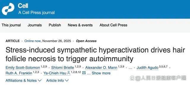 ①Stress-induced sympathetic hyperactivation drives hair follicle necrosis to trigger autoimmunity.Online now,November 26, 2025