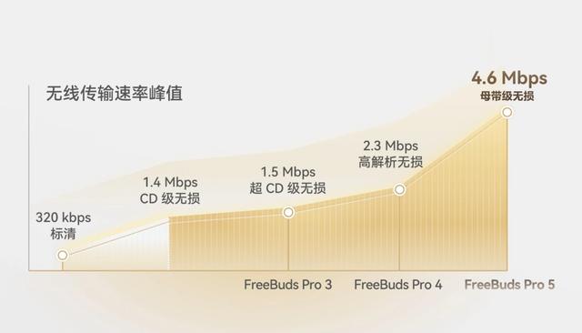 而華為 FreeBuds Pro 5,它把無線傳輸速率,一下子干到了 4.6 Mbps。