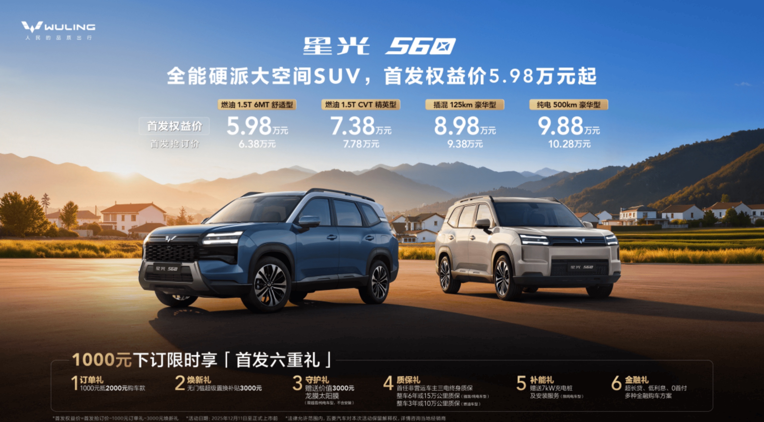 今日,星光560正式亮相2025東盟國(guó)際車(chē)展,并同步全球線下首發(fā)。新車(chē)共推出四款車(chē)型配置:燃油1.5T 6MT舒適型、燃油1.5T CVT精英型、插混125km豪華型及純電500km豪華型。新車(chē)首發(fā)權(quán)益價(jià),對(duì)應(yīng)四款配置分別為5.98萬(wàn)元、7.38萬(wàn)元、8.98萬(wàn)元和9.88萬(wàn)元,原首發(fā)搶訂價(jià)為6.38-10.28萬(wàn)元。