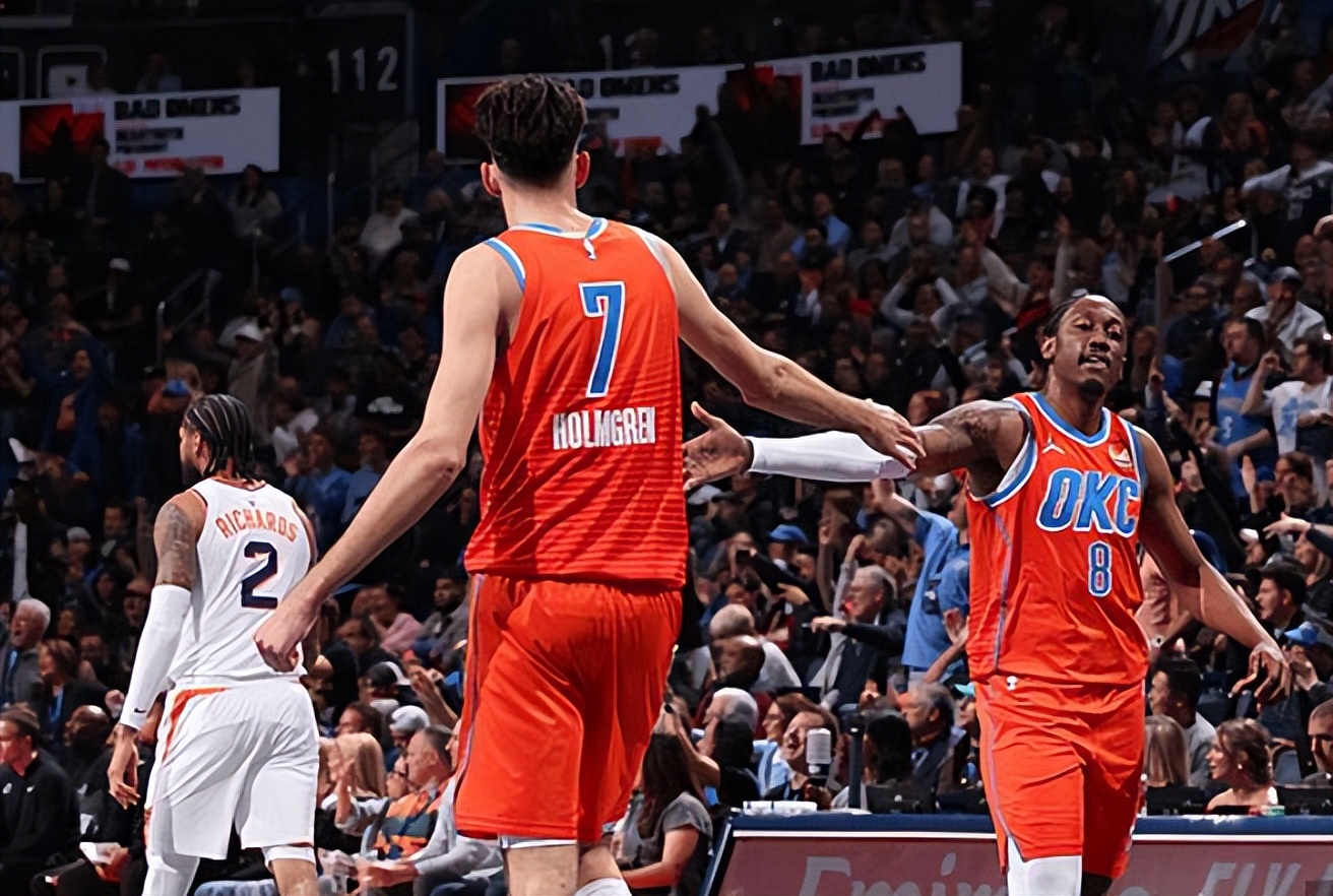 NBA杯賽四分之一決賽,雷霆坐鎮主場迎戰太陽。本場比賽之前,雷霆23勝1負穩居西部第一,這已經是NBA歷史第三好的開局,僅次于69-70賽季的尼克斯和15-16賽季的勇士。同時,雷霆還保持著主場不敗的戰績,他們還取得了一波15連勝;神擋殺神,佛擋殺佛了。