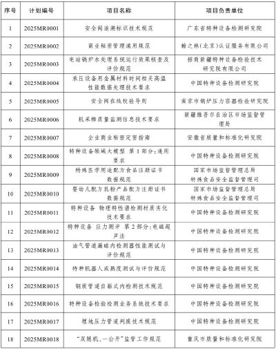 市場監管總局下達市場監管行業標準制修訂項目計劃
