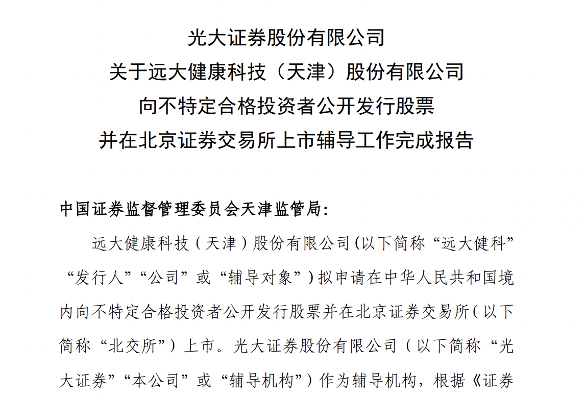 瑞財經(jīng) 劉治穎 近日,遠大健康科技(天津)股份有限公司(以下簡稱:遠大健科)披露上市輔導(dǎo)工作完成報告,擬北交所上市,光大證券為輔導(dǎo)機構(gòu)。