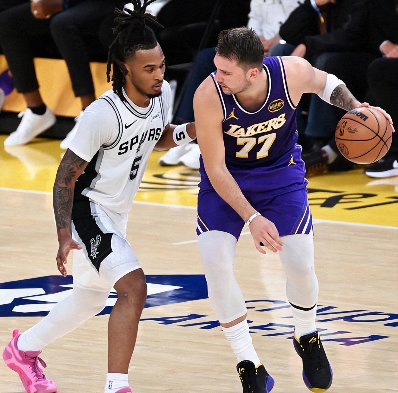 湖人在整場比賽都被馬刺帶著節奏打,即便東契奇和詹姆斯拼盡全力,還有投進8記三分球的斯瑪特,而且詹姆斯還上演了許久未見的隔人扣籃,但是7人得分上雙的馬刺還是戰勝了湖人。由于本場比賽與常規賽戰績相關聯,湖人也因此丟掉了西部第二的位置。北京時間2025年12月11日,洛杉磯湖人119-132負于圣安東尼奧馬刺。東契奇得到35分5籃板8助攻,詹姆斯得到19分15籃板8助攻。