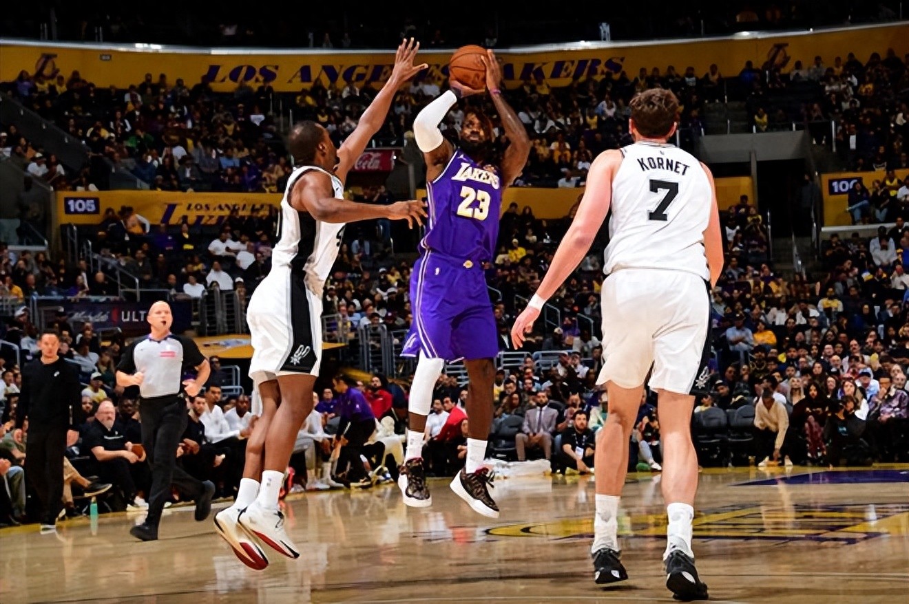 只不過馬刺對于比賽的專注度,以及角色球員的發揮,還是給湖人帶來了不小的壓力。尤其是在輪換時間,哈珀、約翰遜等人接連在外線命中,在約翰遜和福克斯接連命中三分球之后,湖人已經落后馬刺8分。詹姆斯在追防時蓋下了福克斯的快攻上籃,只可惜回過頭來文森特未能將他的傳球轉化為助攻。憑借著更穩定的投籃,馬刺將分差拉大至17分。關鍵時刻,詹姆斯的中投命中,艾頓也在籃下將球補進,湖人依舊在努力縮小著分差。不過馬刺并沒有慌亂,他們依舊利用陣地進攻在壓制著湖人,沒有辦法的湖人只能依靠東契奇的單打維持進攻端的得分。