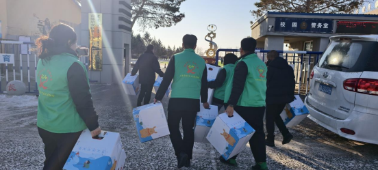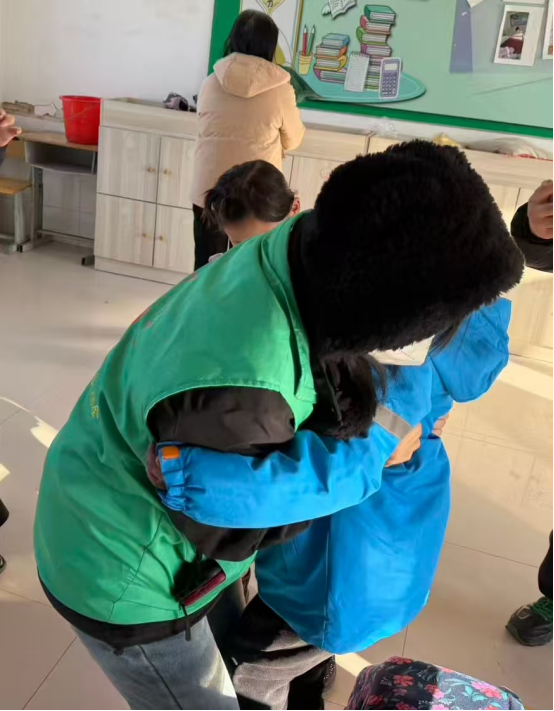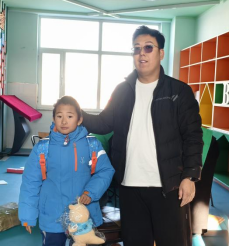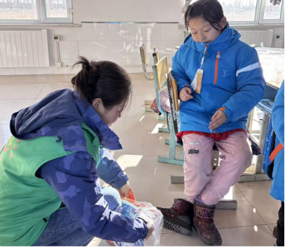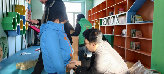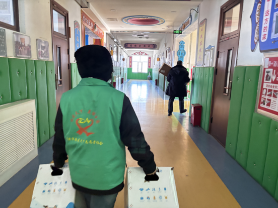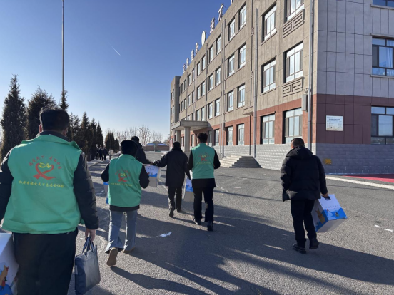 隨后,志愿者們驅車來到海勃日戈鎮蒙古族中心小學,為這里的孩子送去了關懷。當志愿者將溫暖包送到他們手中時,孩子小心翼翼地撫摸著新書包里的文具套裝,輕聲說:"謝謝你們,我可以用新文具好好學習了。"志愿者的到來讓孩子感受到冬日溫情,希望孩子們能夠更專注于學業,追逐心中的夢想。