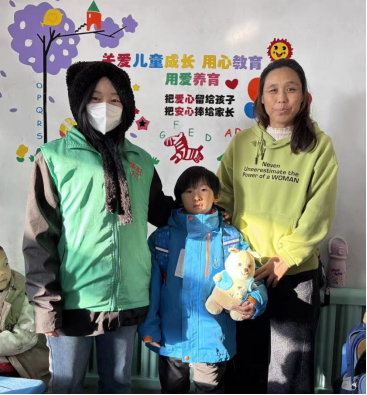 志愿者們帶著溫暖包,來到神童幼兒園,為這里的孩子送去了特別的關懷。在幼兒園老師的陪同下,志愿者們將溫暖包送到小朋友手中。當打開包看到可愛的、嶄新的沖鋒衣、繪本和益智玩具時,小朋友好奇地睜大了眼睛。志愿者為小朋友試穿新衣,她開心地拍著小手:"謝謝姐姐,衣服穿著很舒服!"志愿者們希望,這份溫暖的禮物能為小豆豆的童年增添一抹亮色,讓繪本與畫筆成為她認識世界的窗口。