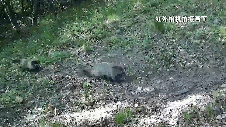 在山林間,兩只“膘肥體壯”的果子貍步履匆匆,不一會兒,就消失在樹林里。
