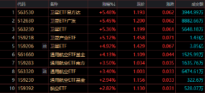 ETF收盤漲跌不一,衛星ETF易方達(563530)領漲1.48%,衛星ETF(563230)漲1.38%,衛星ETF廣發(512630)漲1.38%,通信ETF(515880)領跌3.92%,通信設備ETF(159583)跌3.71%,創業板人工智能ETF華寶(159363)跌3.63%。