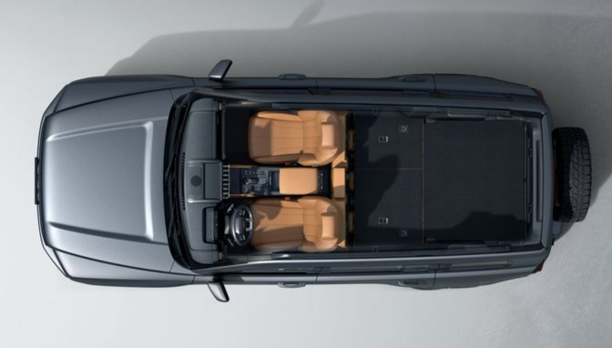 黑化越野套件+實用配置,硬派與舒適兼顧。外觀自帶“黑武士”硬派氣場,啞光黑涂裝耐刮耐造,進氣格柵、車輪等細節全面黑化,再加上原廠標配的全框式行李架+爬梯、突出式后保險杠等越野套件,不僅顏值在線,穩固性更是遠超副廠件,日常固定備胎、搭建車頂帳篷都夠用。