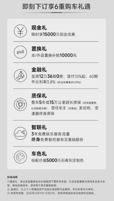 限時優惠窗口期(2025.12.11-12.31)福利拉滿:可享1.5萬元現金直降、1萬元本/外品置換補貼;金融政策更是友好,支持至高12萬元36期0息,或首付10%起、60期年化利率3.8%(折合年利率約1.99%)的低息方案,大幅降低購車門檻。