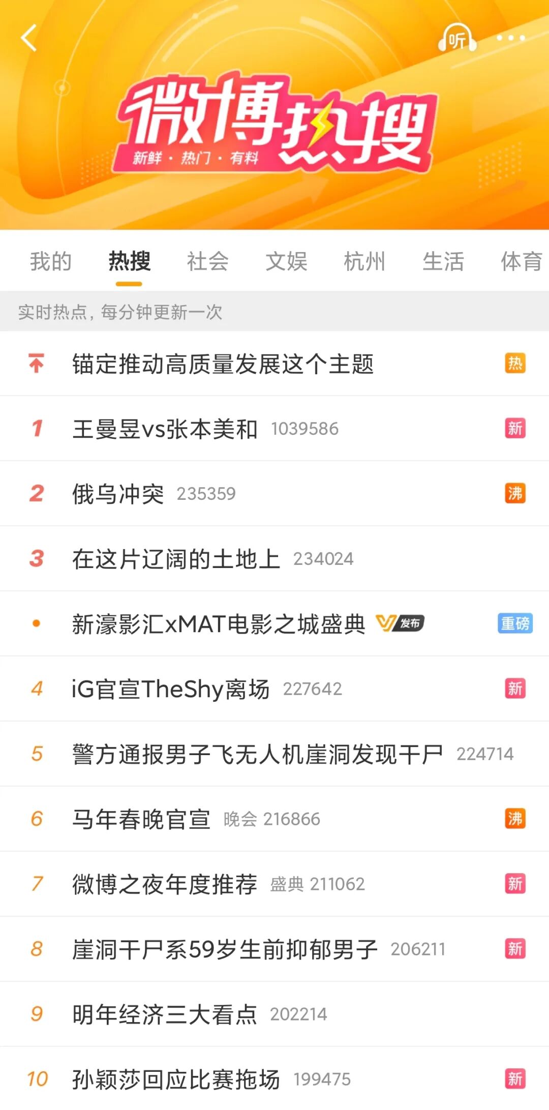 同時,為更好滿足廣大用戶獲取多元熱點(diǎn)、參與公共討論的需求,微博加強(qiáng)分榜與主榜之間的聯(lián)動,為賽事、科技、產(chǎn)業(yè)資訊等垂直賽道的優(yōu)質(zhì)內(nèi)容提供了“破圈”通道,讓算法在“追熱”之外,更能“識好”。